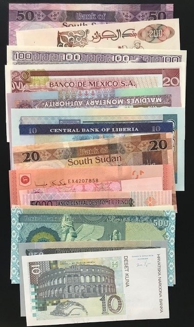 Mixed Lot of 16 UNC banknotes, many of which are different from each other