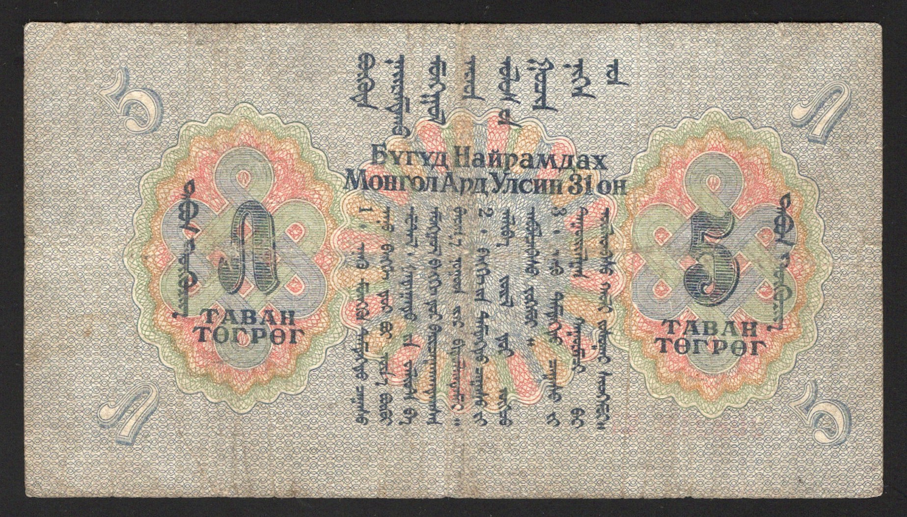 Mongolia 5 Tugrik 1941