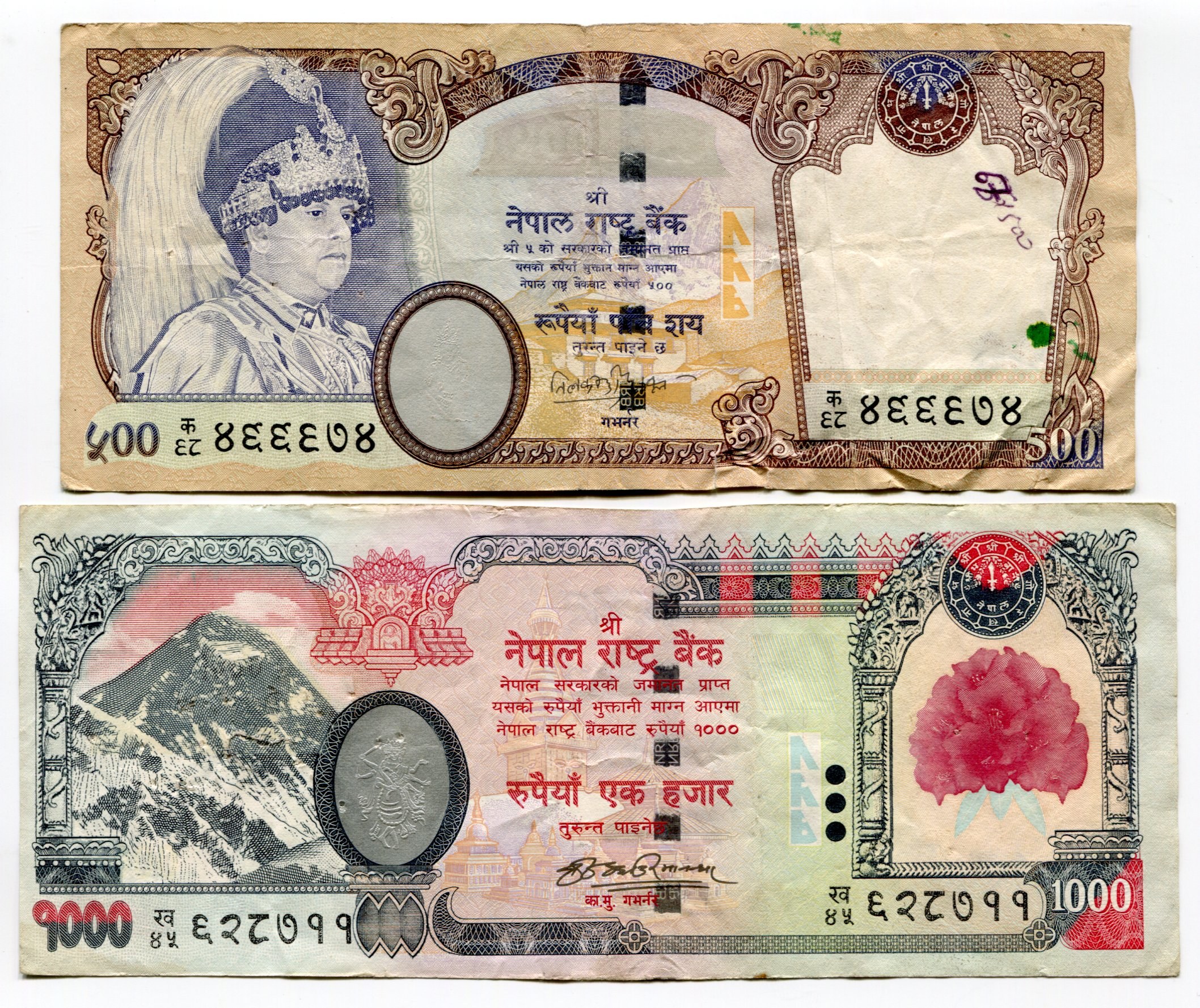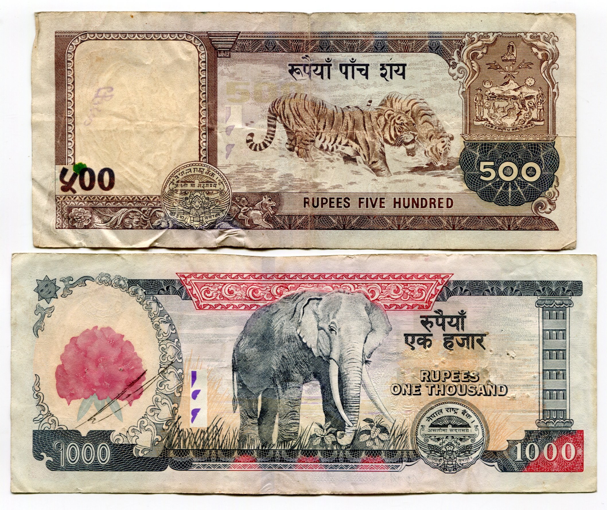 Nepal Set of 2 Notes: 500 - 1000 Rupees 2002 -08