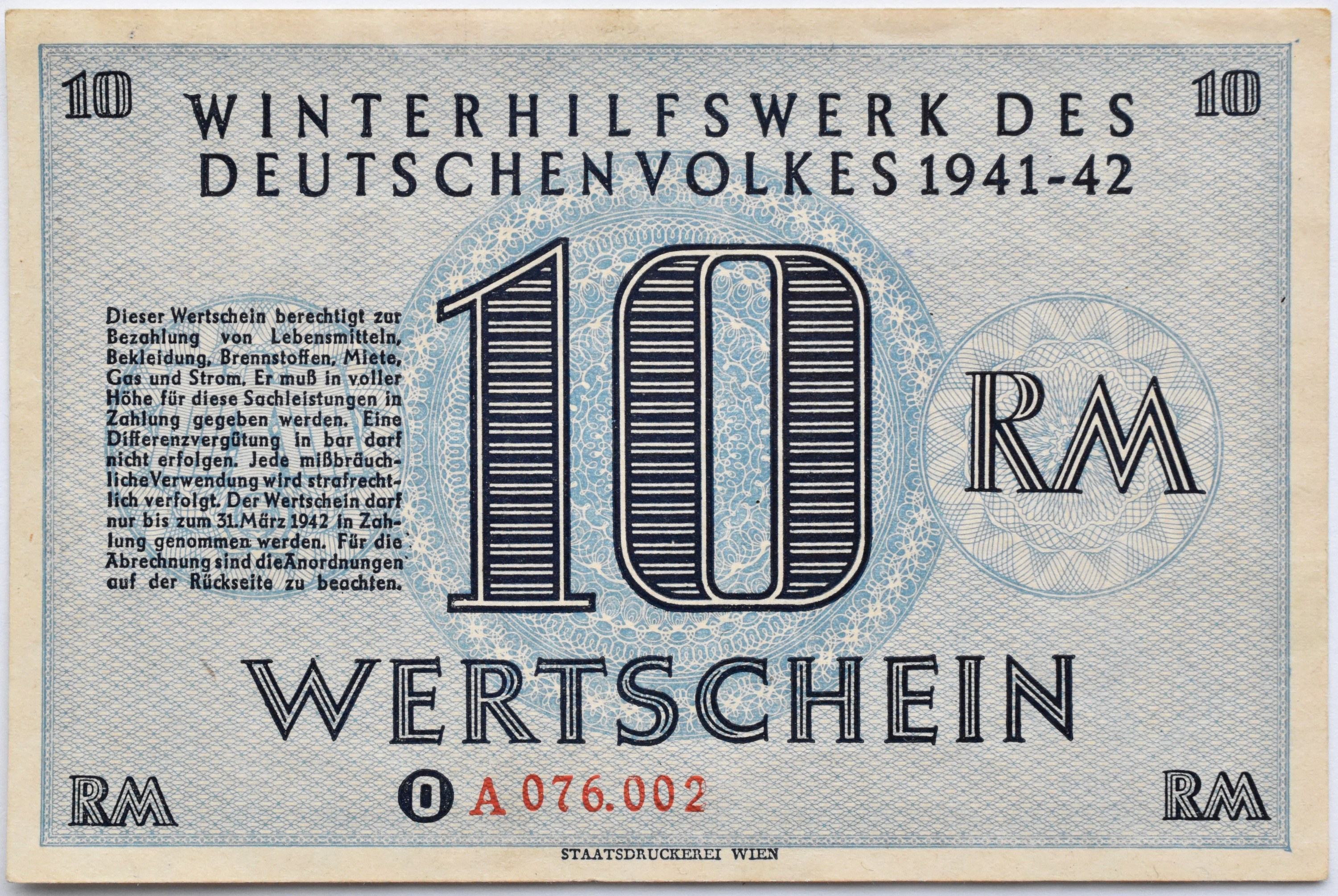 Niemcy, Pomoc zimowa dla narodu niemieckiego, 10 marek 1941/42, UNC, rzadkie