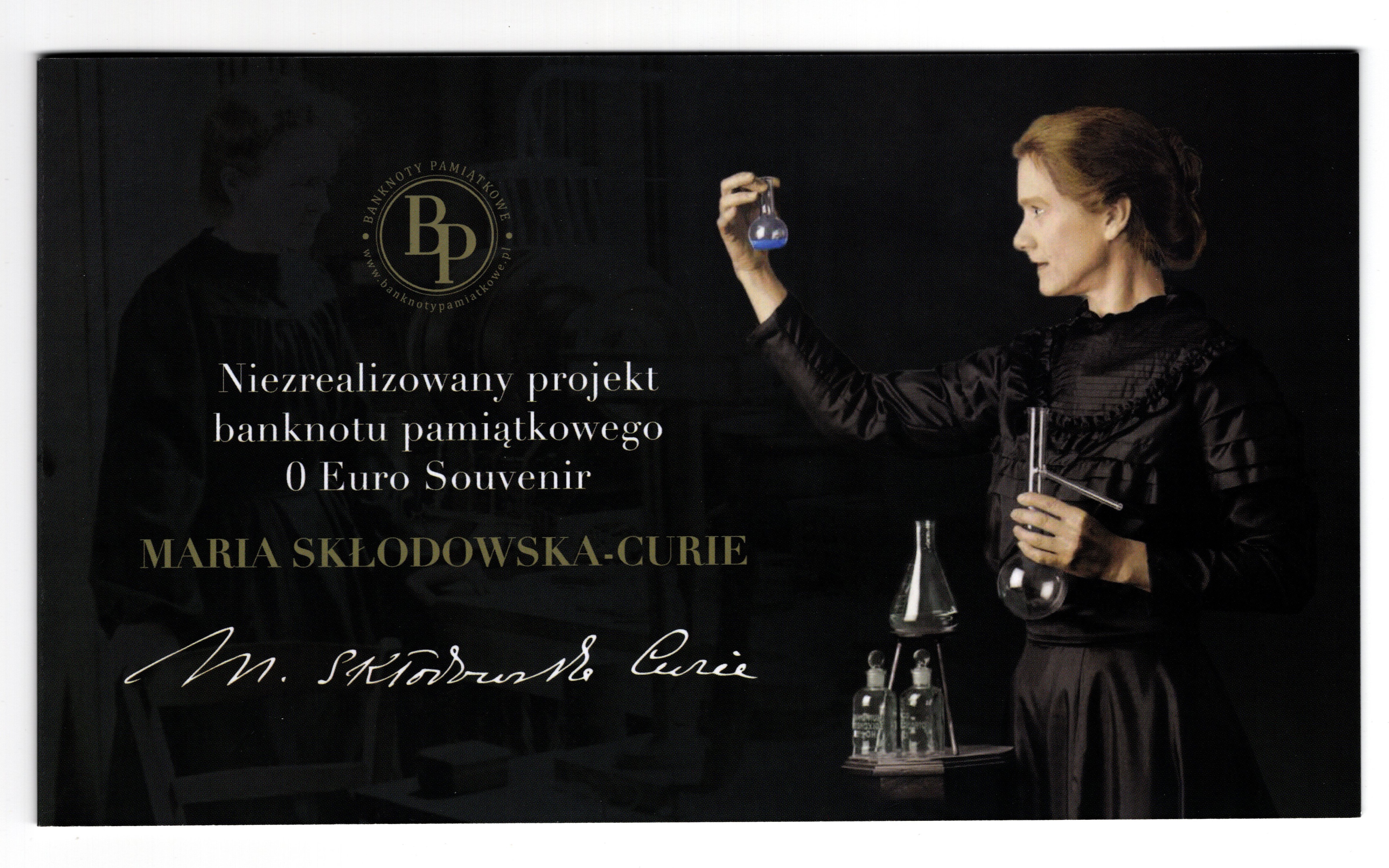 Niezrealizowany projekt banknotu pamiątkowego 0 Euro Souvenir, Maria Skłodowska-Curie No 77