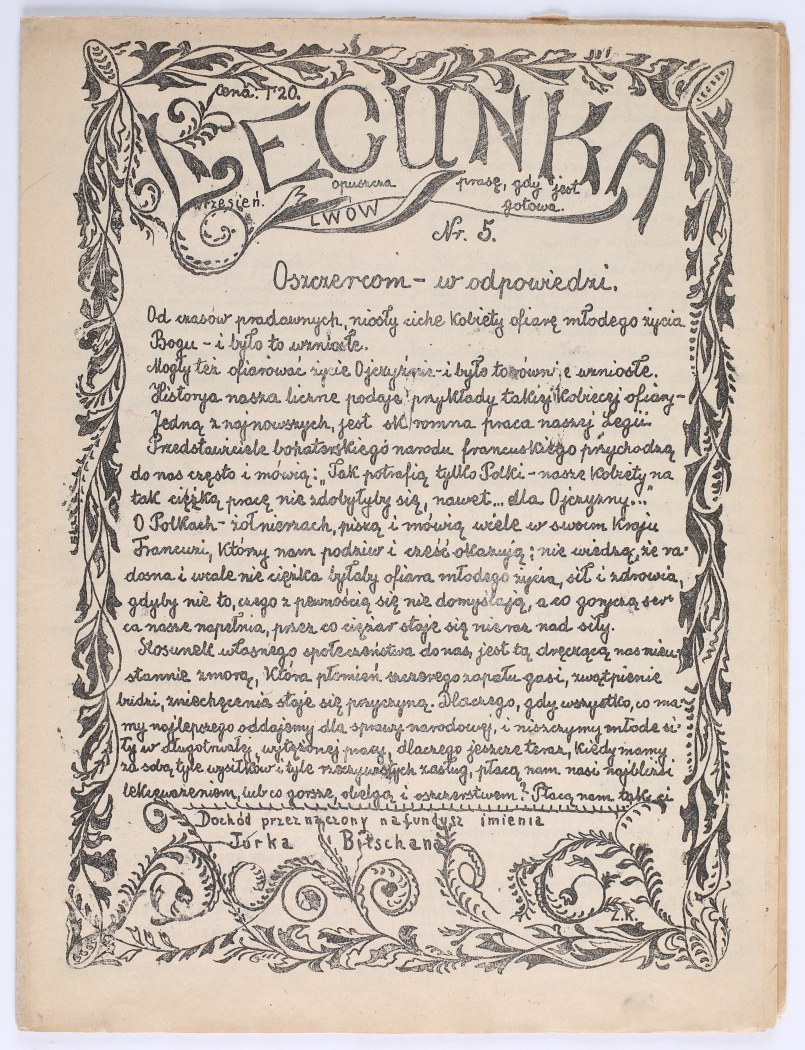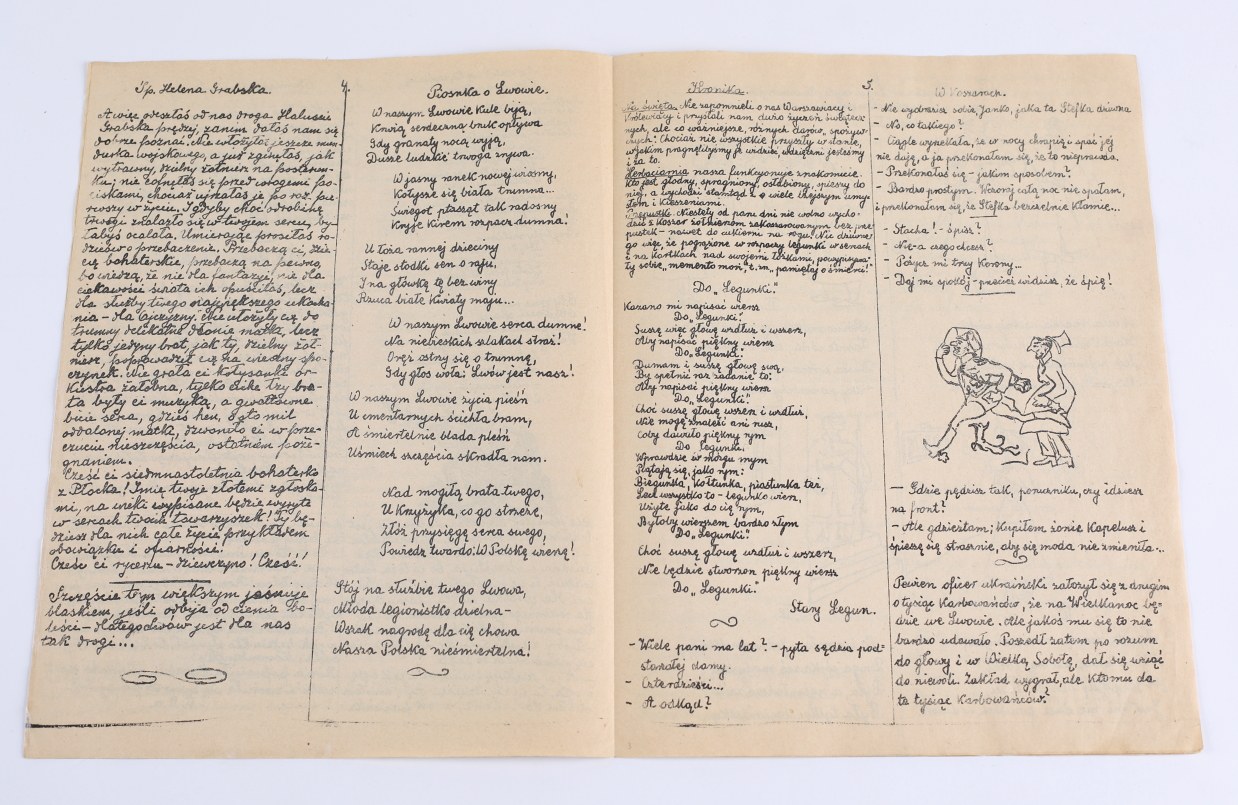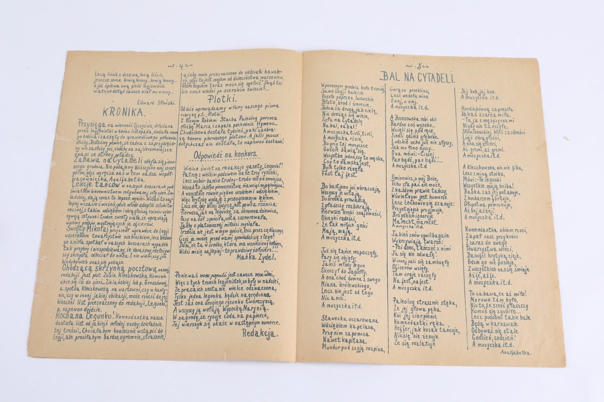 Unikatowy zbiór czasopisma wydawanego w formie rękopisu powielanego (w litografii), przez Ochotniczą Legię Kobiet. Wyszło w sumie 9 numerów, w ofercie niniejszej prezentujemy 5 z nich.