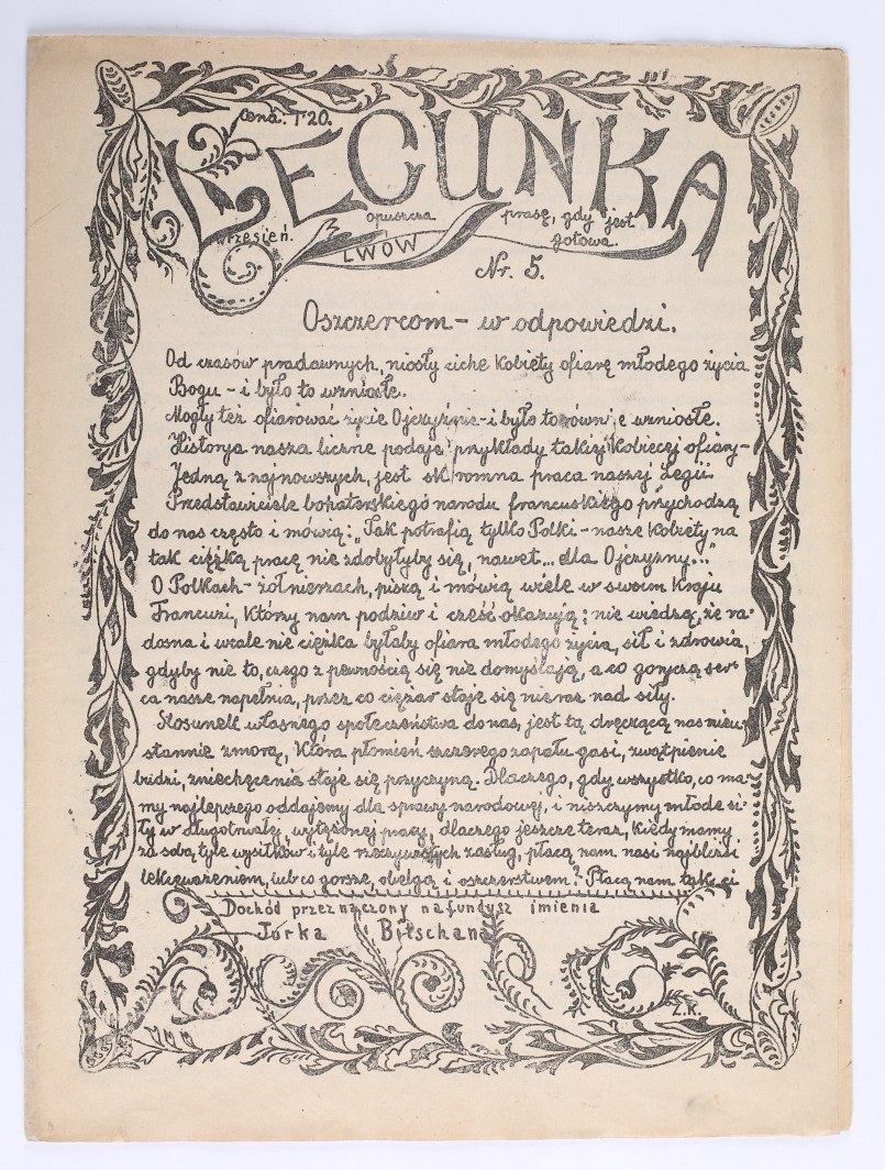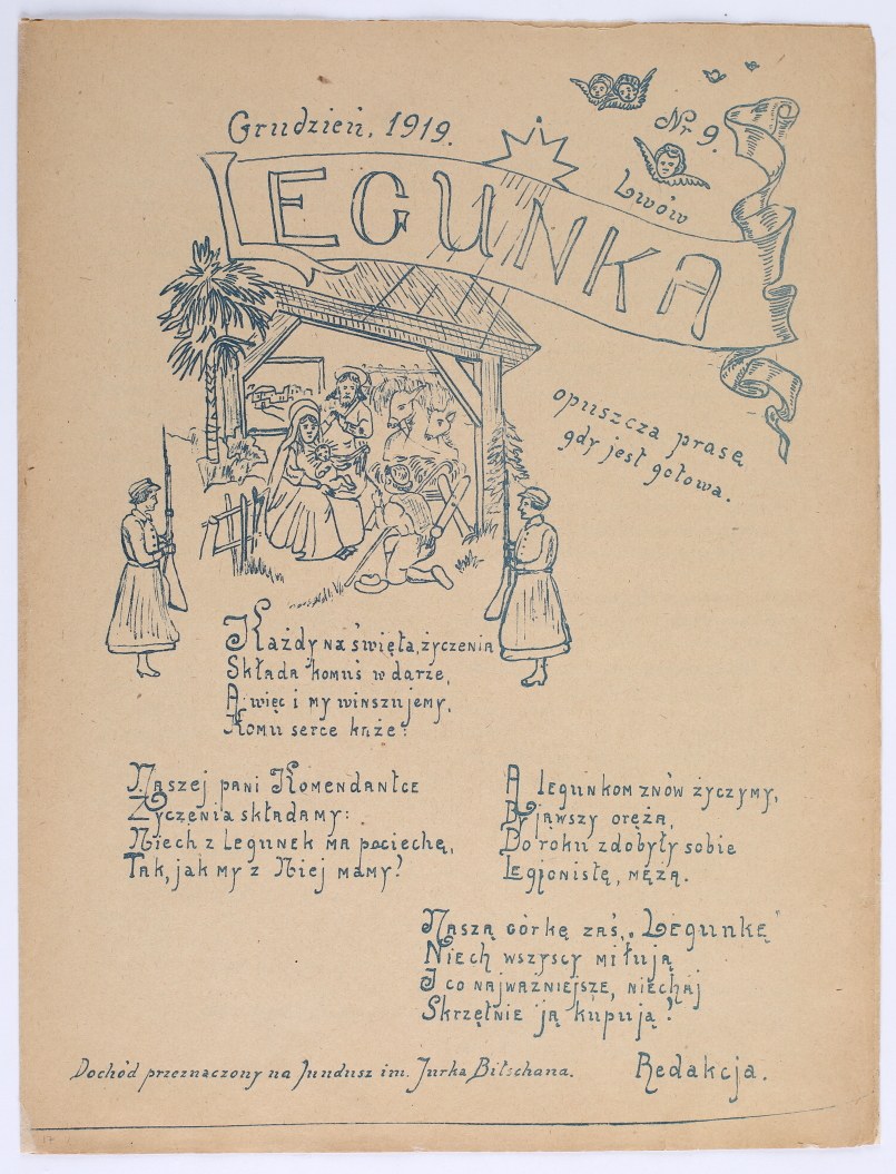 Ochotnicza Legia Kobiet] Legunka : opuszcza prasę kiedy zechce : nie kładąc tamy dobroczynności, nadwyżka przeznaczona na fundusz im. Jurka Bitschana. Numery 1, 4, 5, 7 i 9. Lwów 1919.Lit. Akc. Tow. Lwów