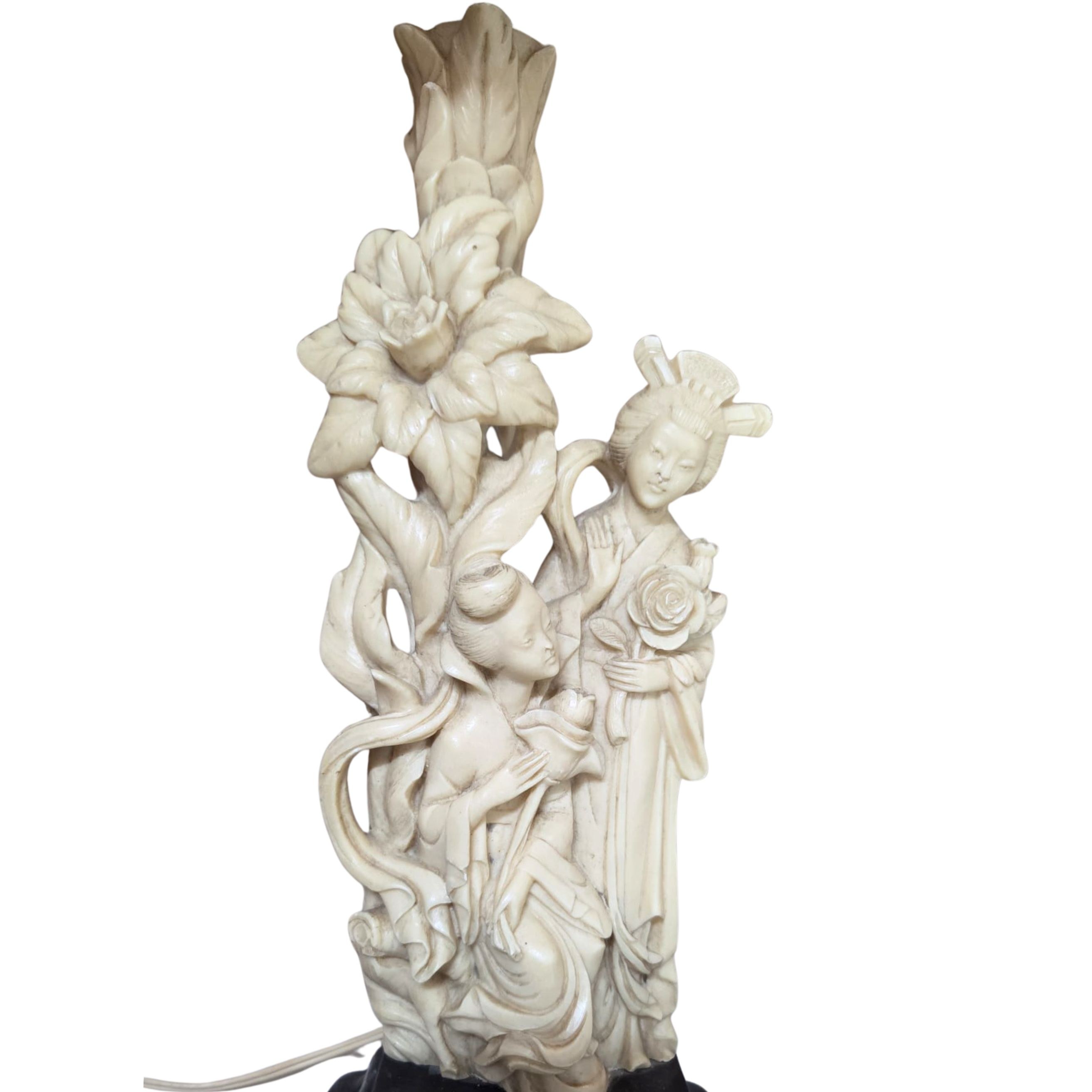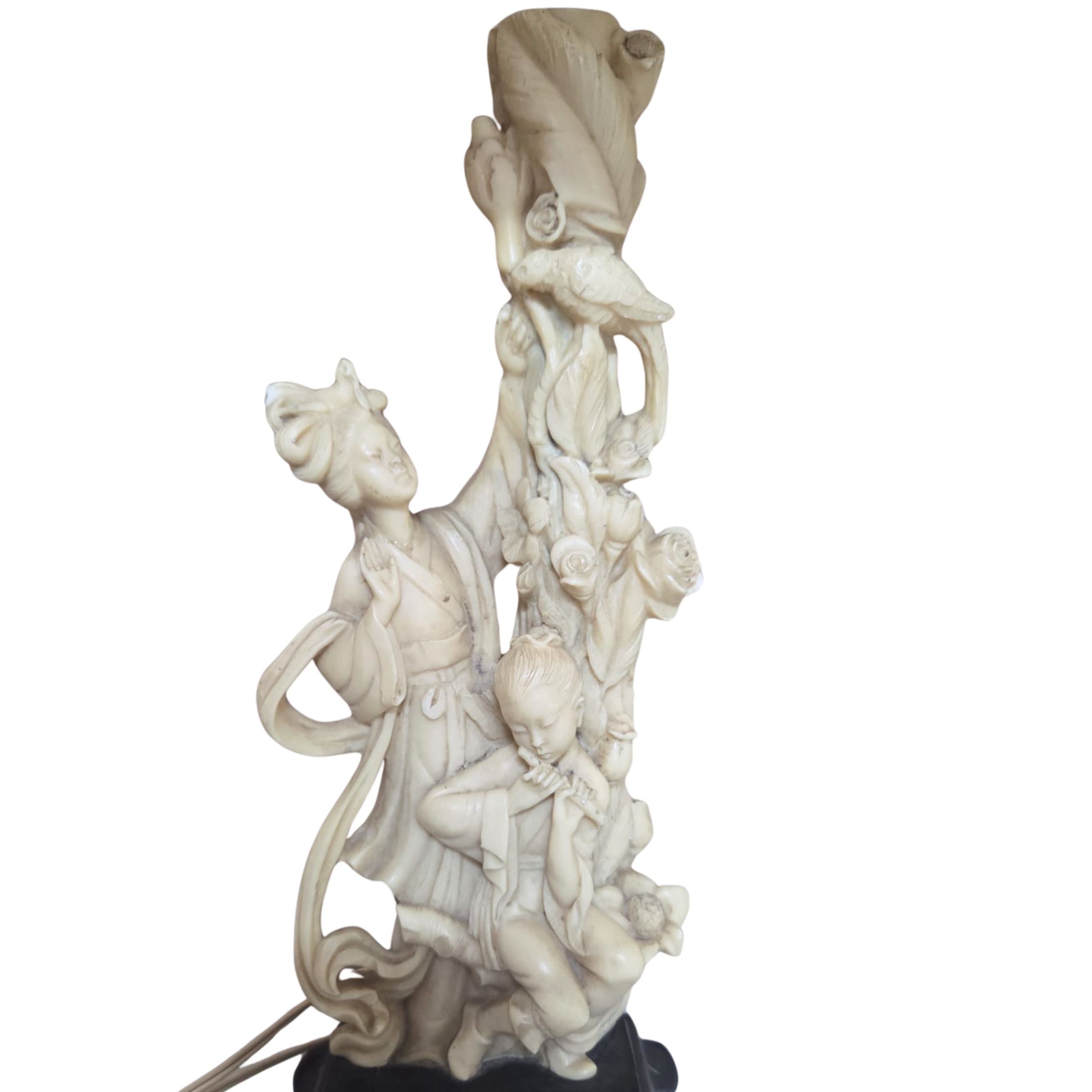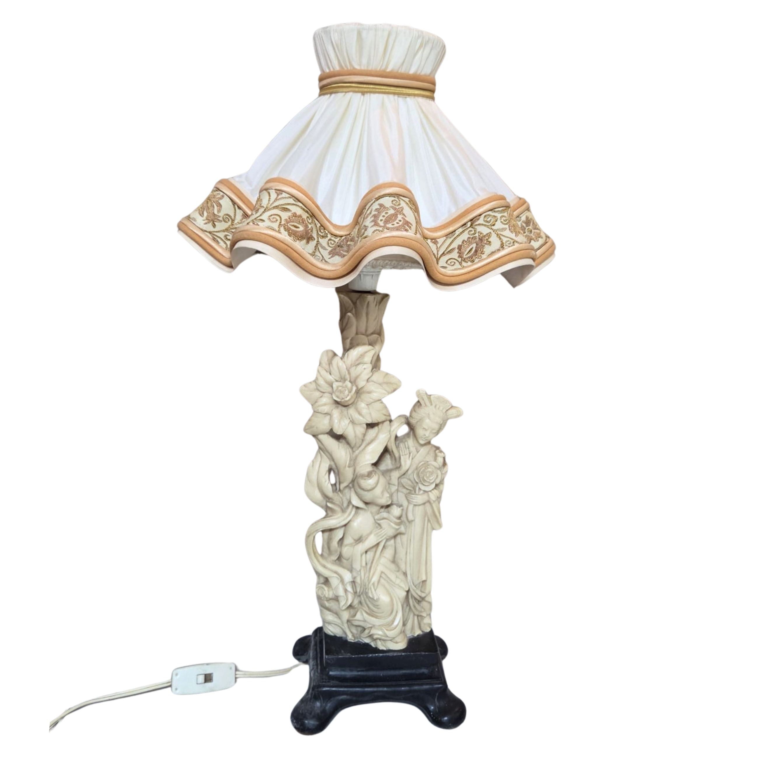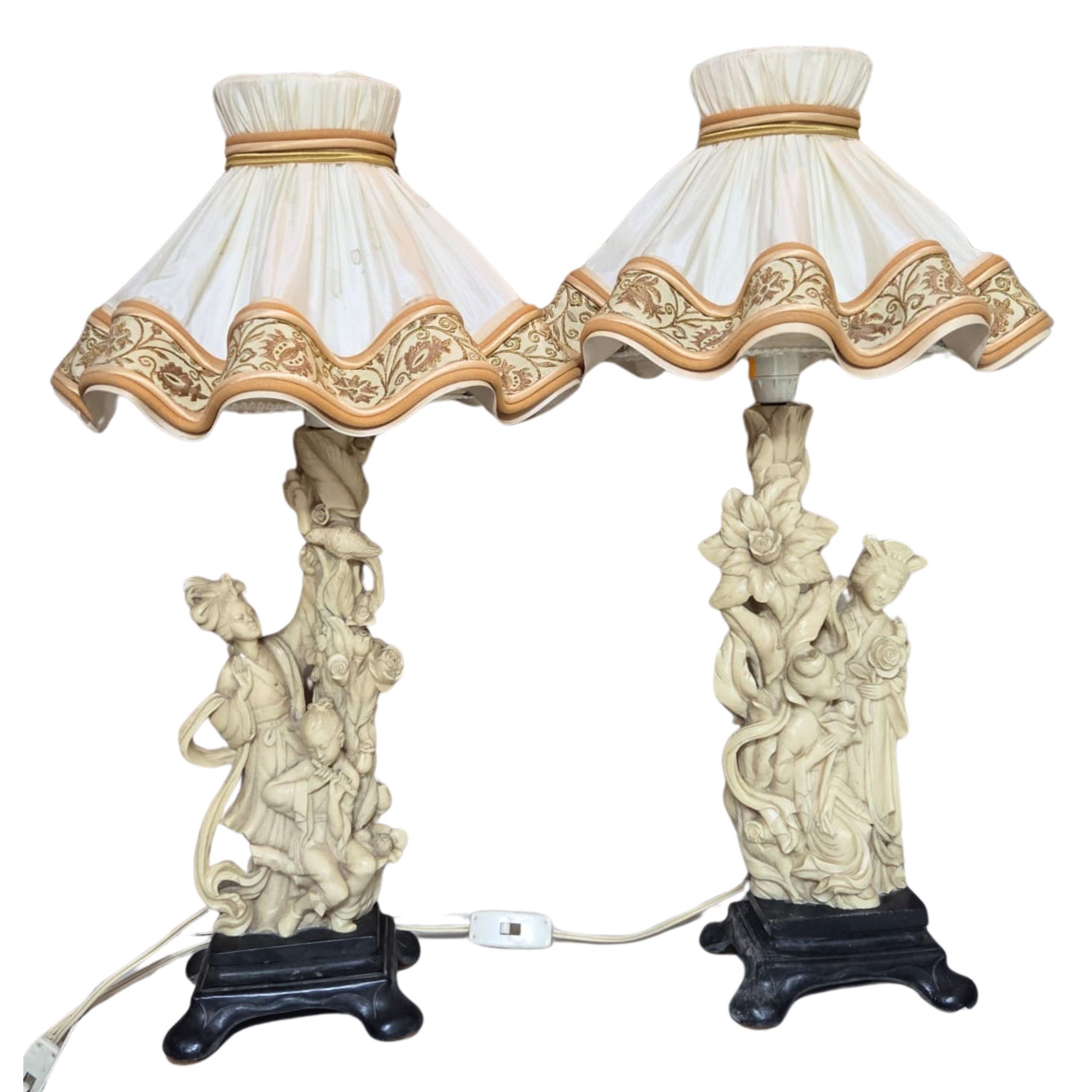 Dwie wyjątkowe lampki nocne, zdobione postaciami w stylu chińskim.
