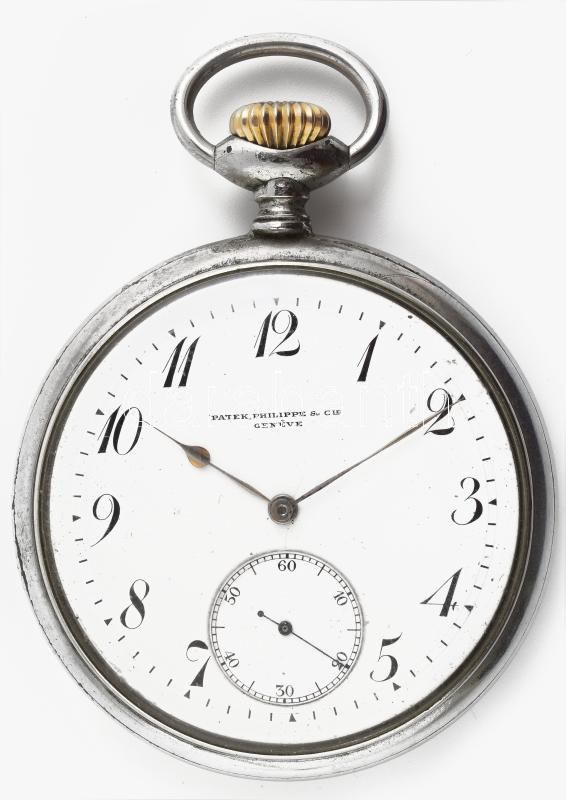 Patek Philippe zsebóra, XX. sz. eleje. Másodpercmutatós, szép számlappal, fém tokkal. Működő, jó állapotban, d: 53 mm ...