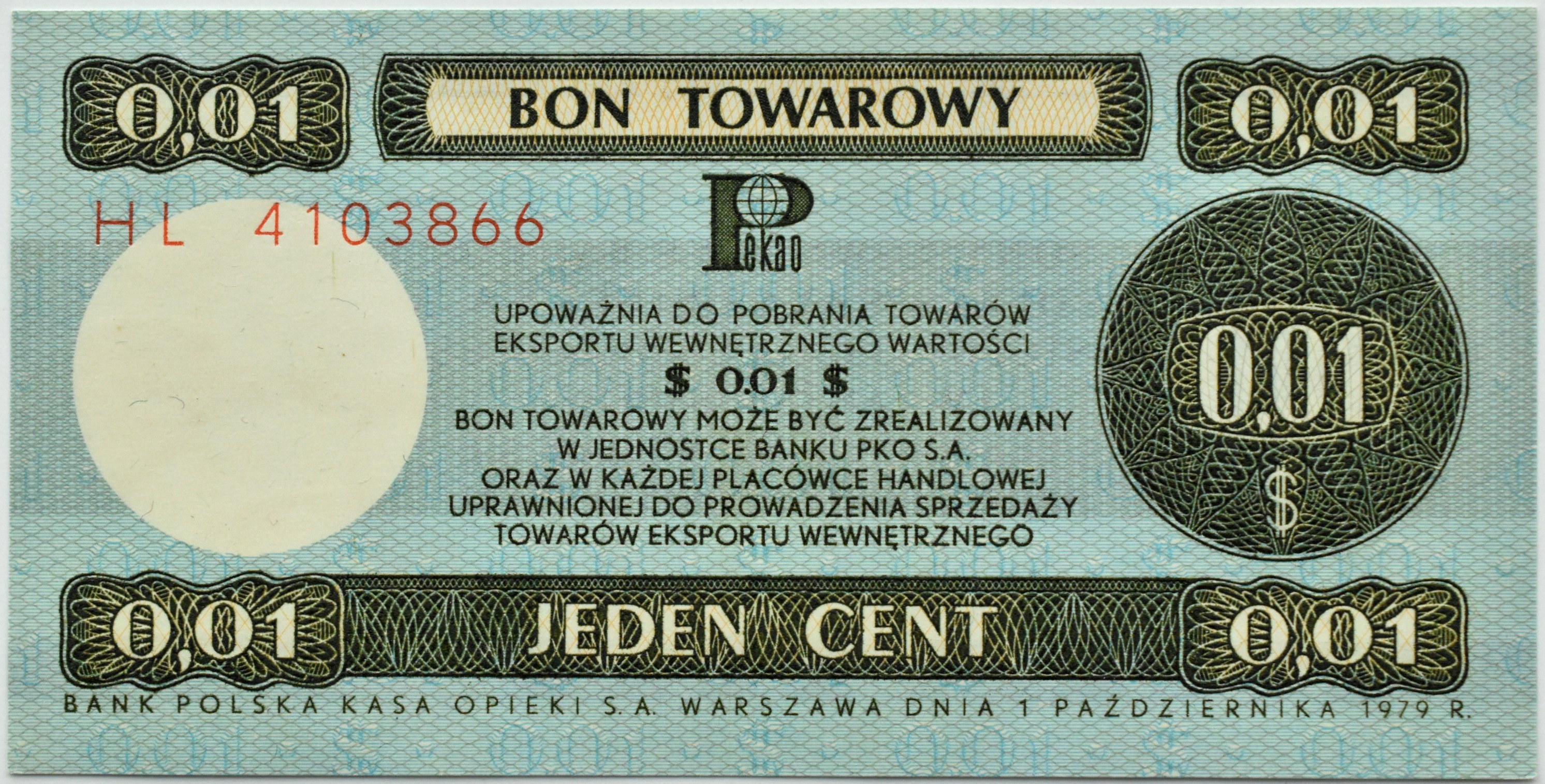 PeWeX, 1 cent 1979, seria HL, UNC