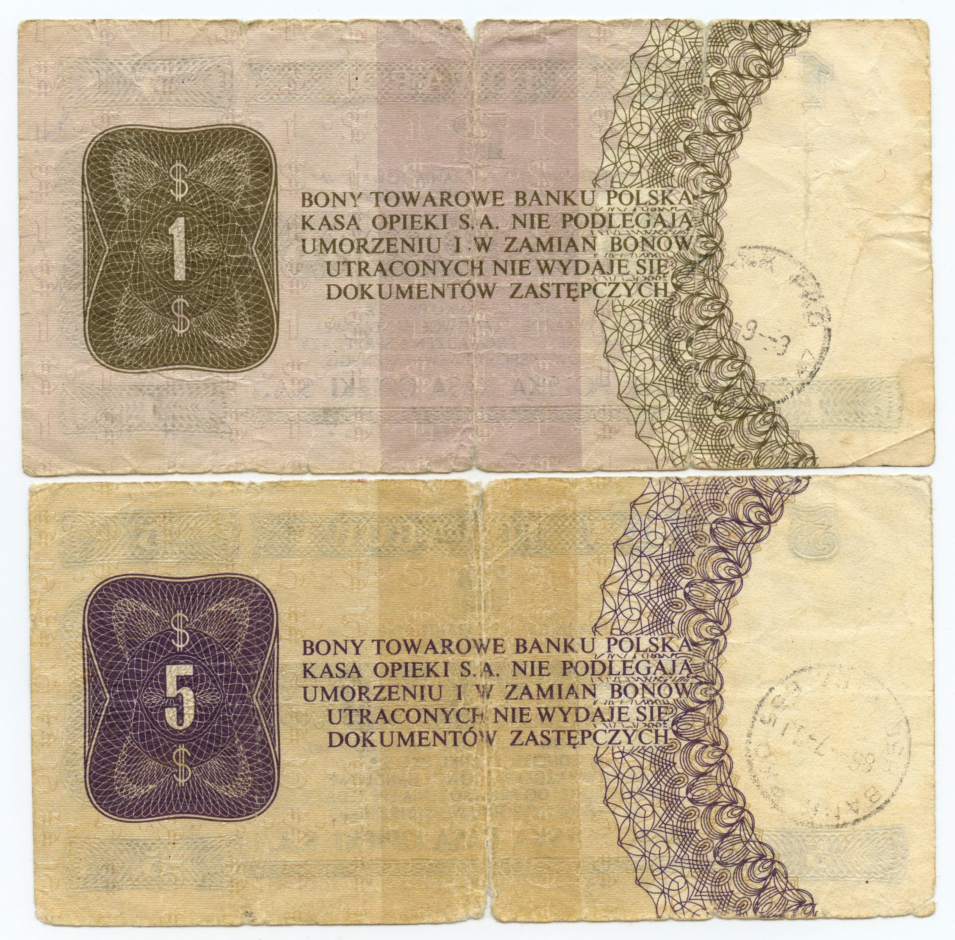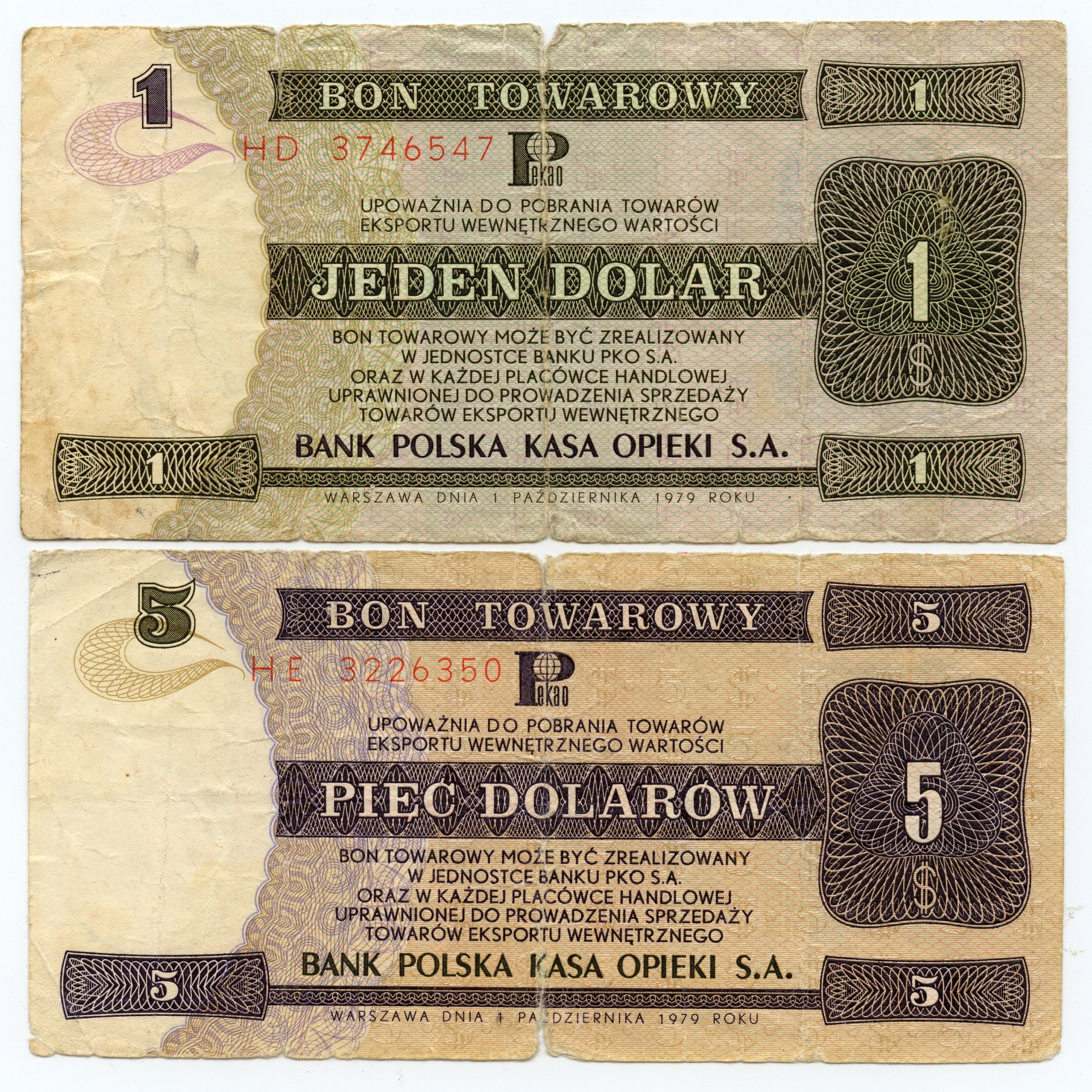 PEWEX - 1 i 5 dolarów 1979 - seria HD i HE - zestaw 2 sztuk