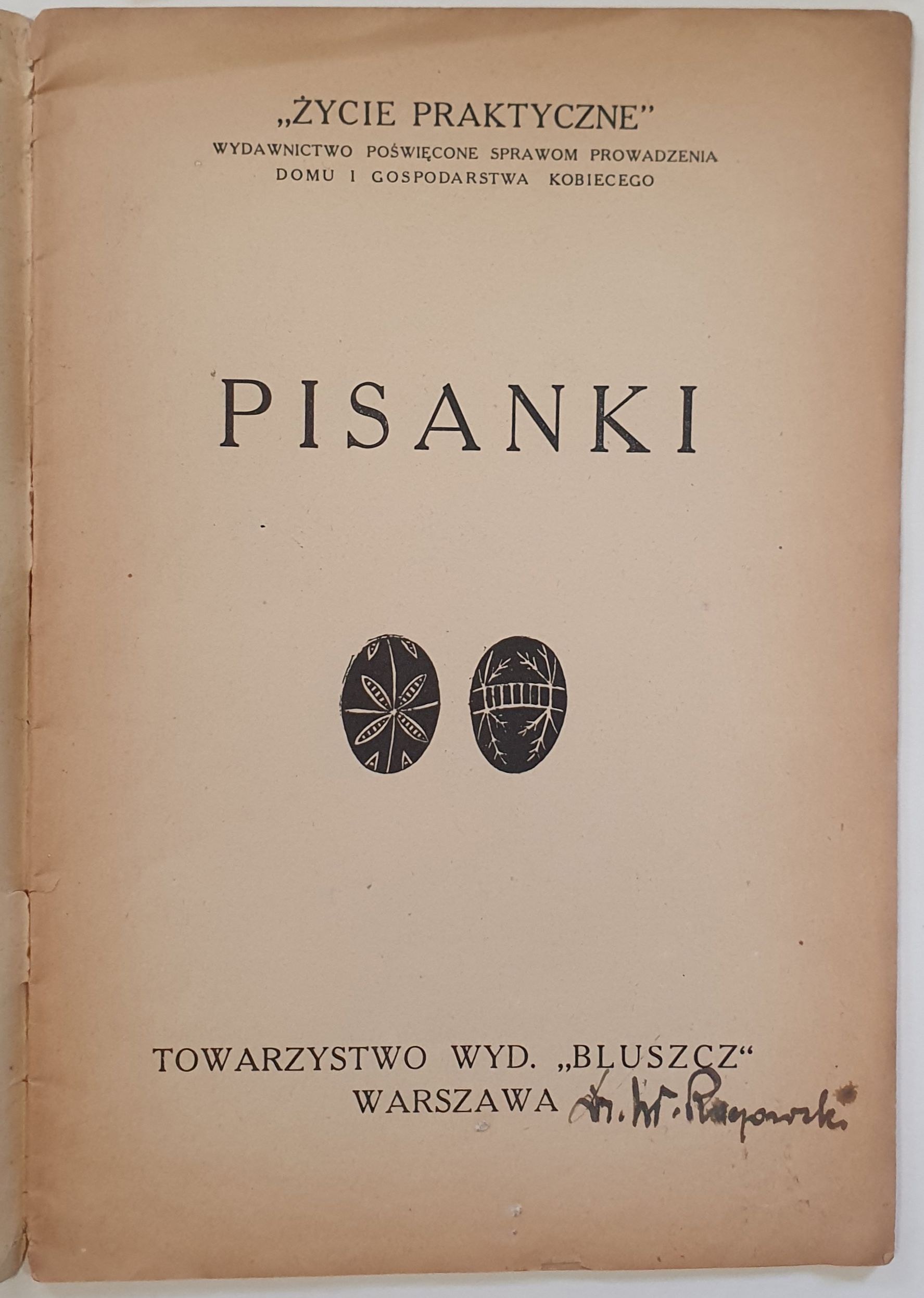Pisanki. Seria: „Życie Praktyczne”, wydawnictwo poświęcone sprawom prowadzenia domu i gospodarstwa kobiecego. Warszawa: Towarzystwo Wyd. „Bluszcz”, [1927].