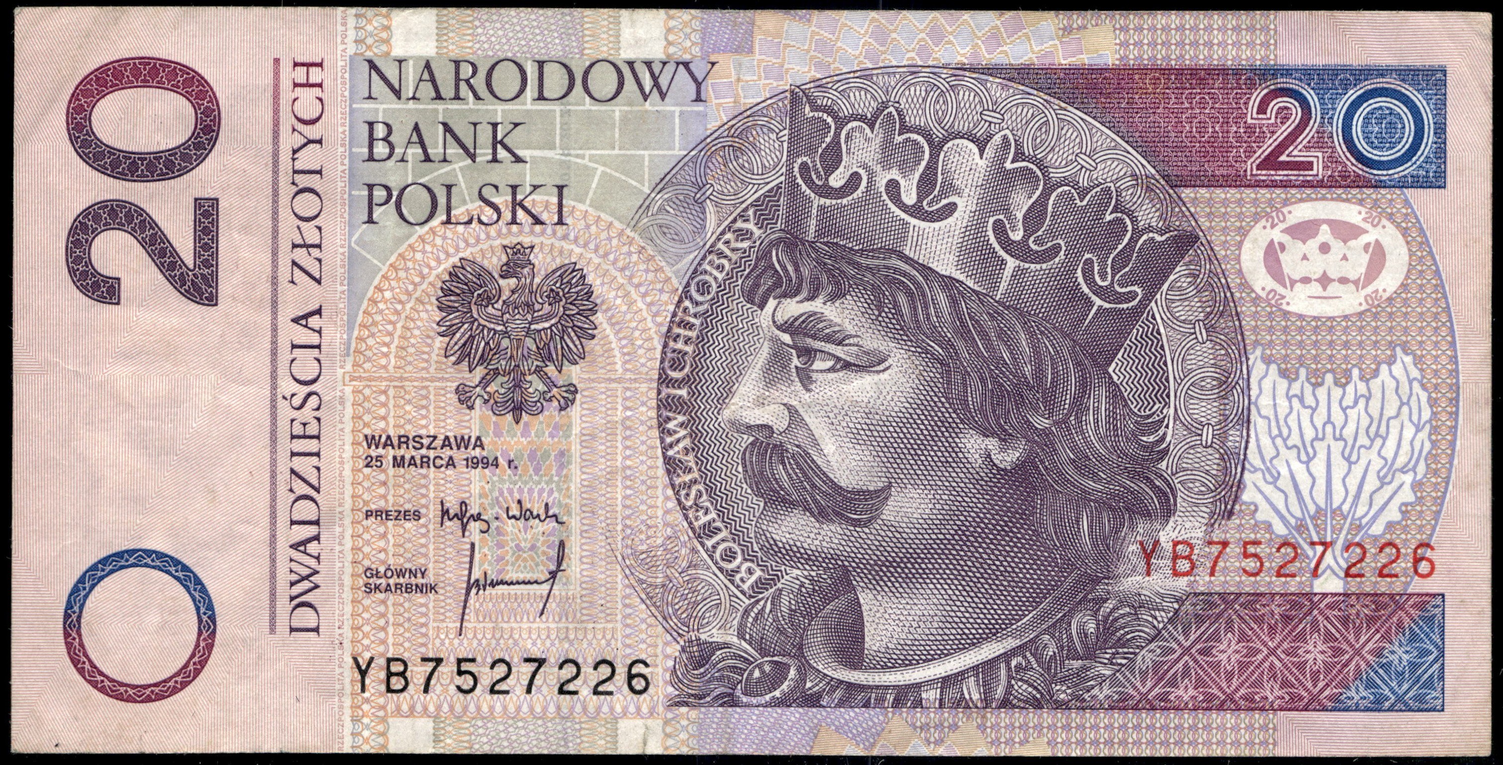 Poland. 1994 20 Zlotych Prefix YB REPLACEMENT