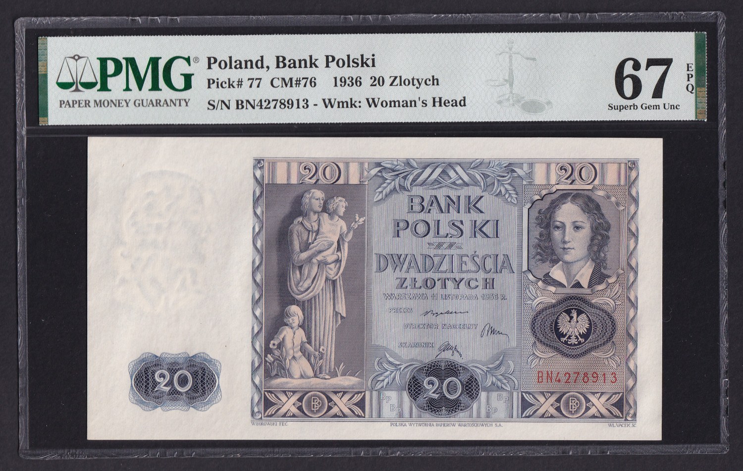 Poland 20 Zlotych 1936 - PMG 67 EPQ Superb Gem Unc