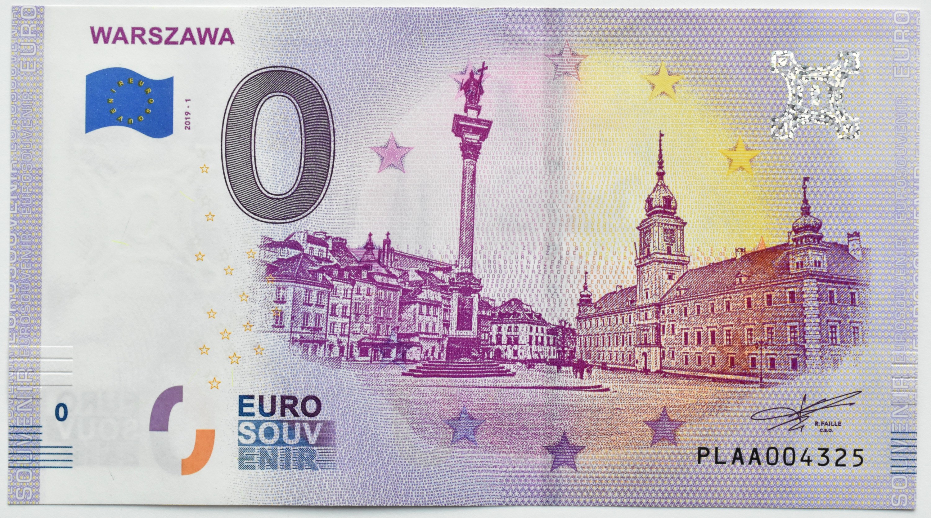Polska, 0 euro 2019 - Warszawa, pierwszy polski banknot z tej serii