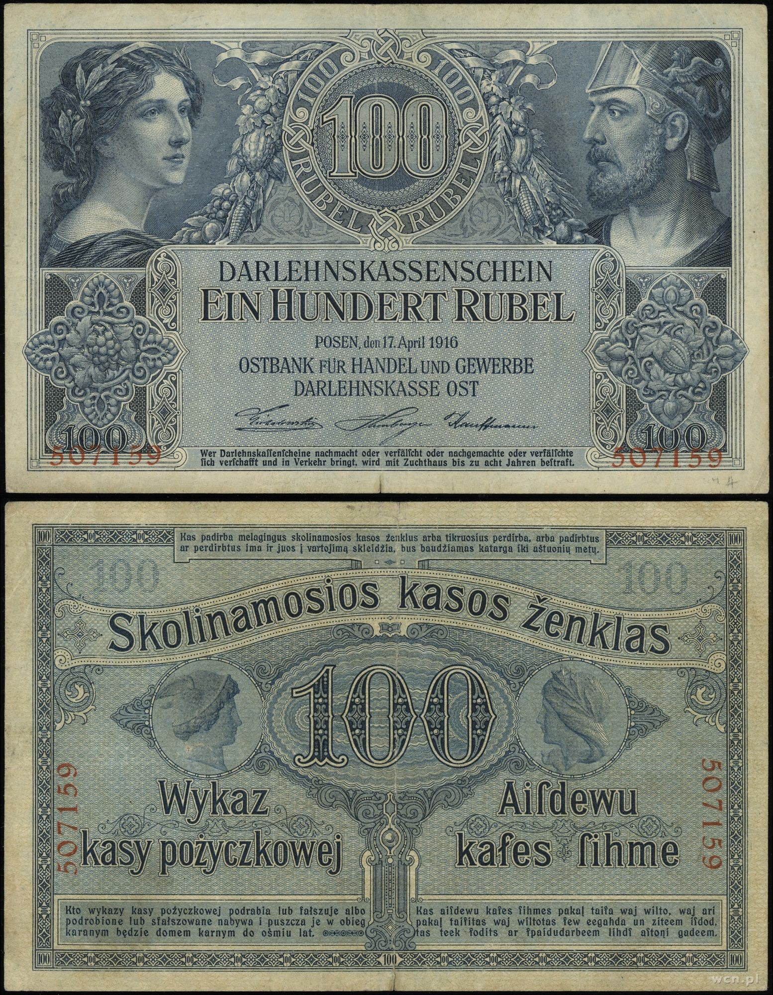 Banknoty niemieckich władz okupacyjnych (1915–1918) - Ostbank für Handel und Gewerbe, Darlehnskasse Ost, Posen