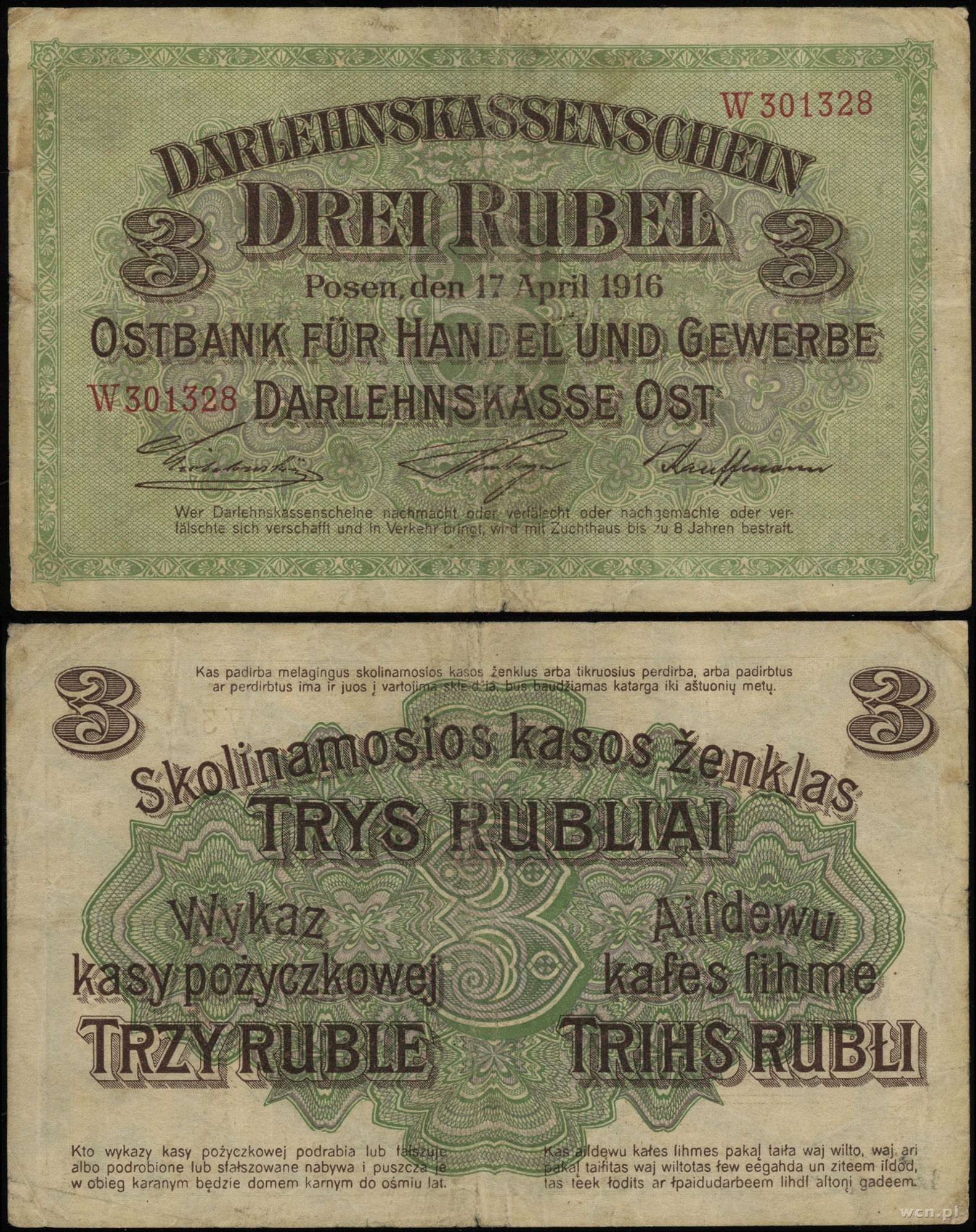 Banknoty niemieckich władz okupacyjnych (1915–1918) - Ostbank für Handel und Gewerbe, Darlehnskasse Ost, Posen