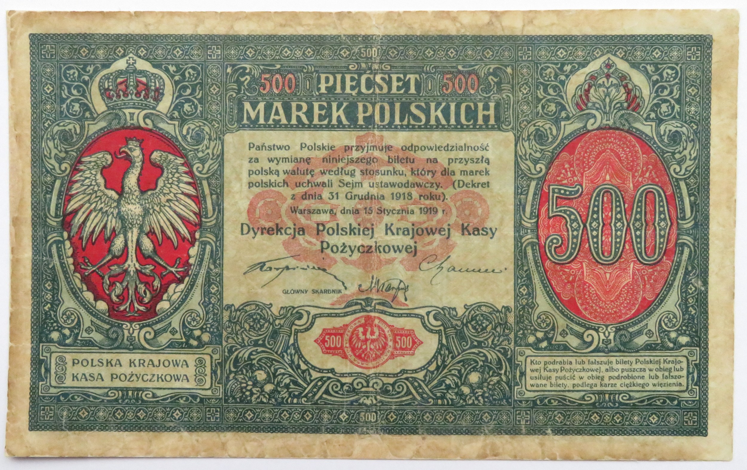 Polska, II RP, DYREKCJA - 500 marek 1919, Warszawa
