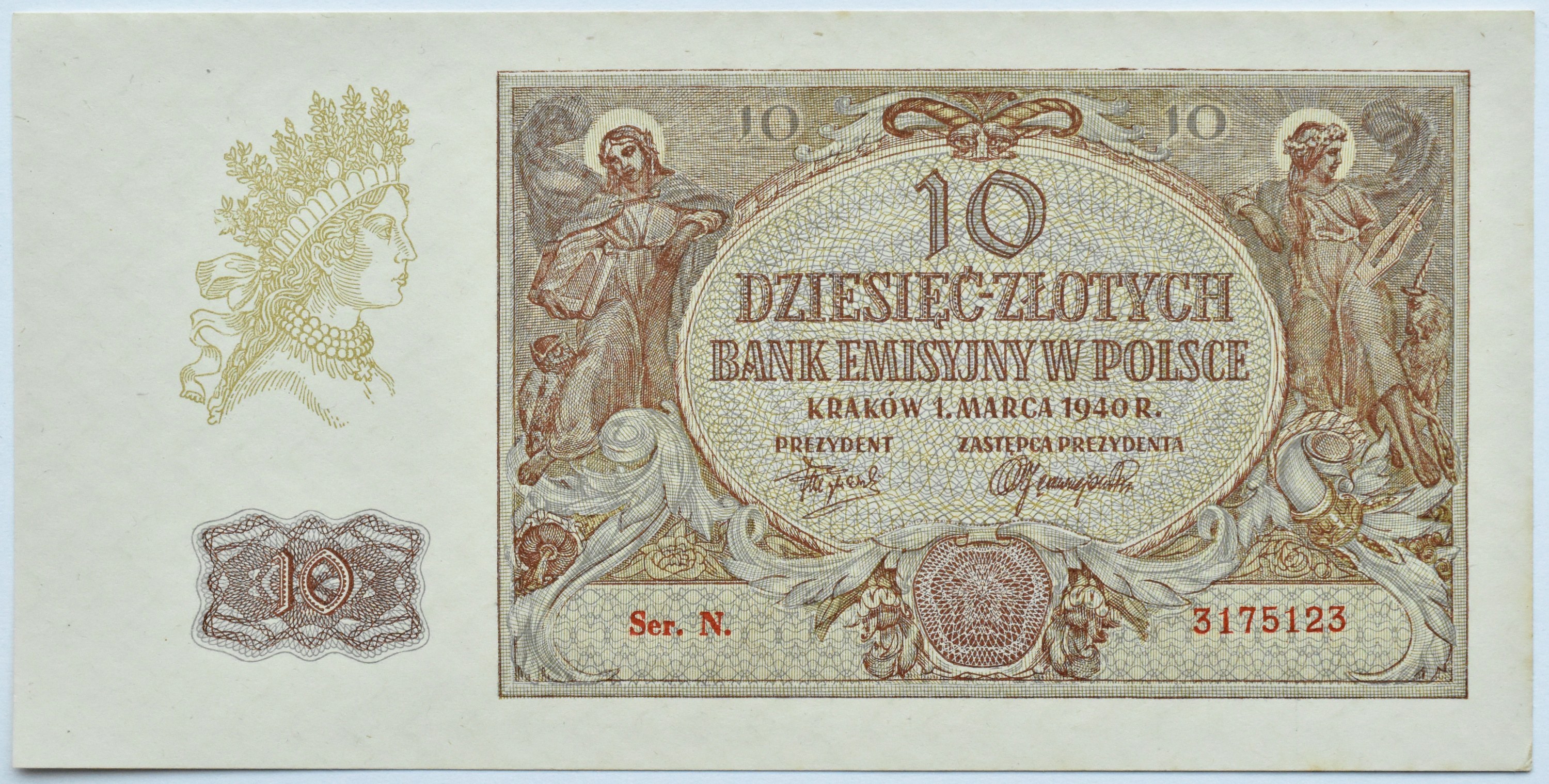 Polska, Generalna Gubernia, 10 złotych 1940, seria N, Kraków, UNC