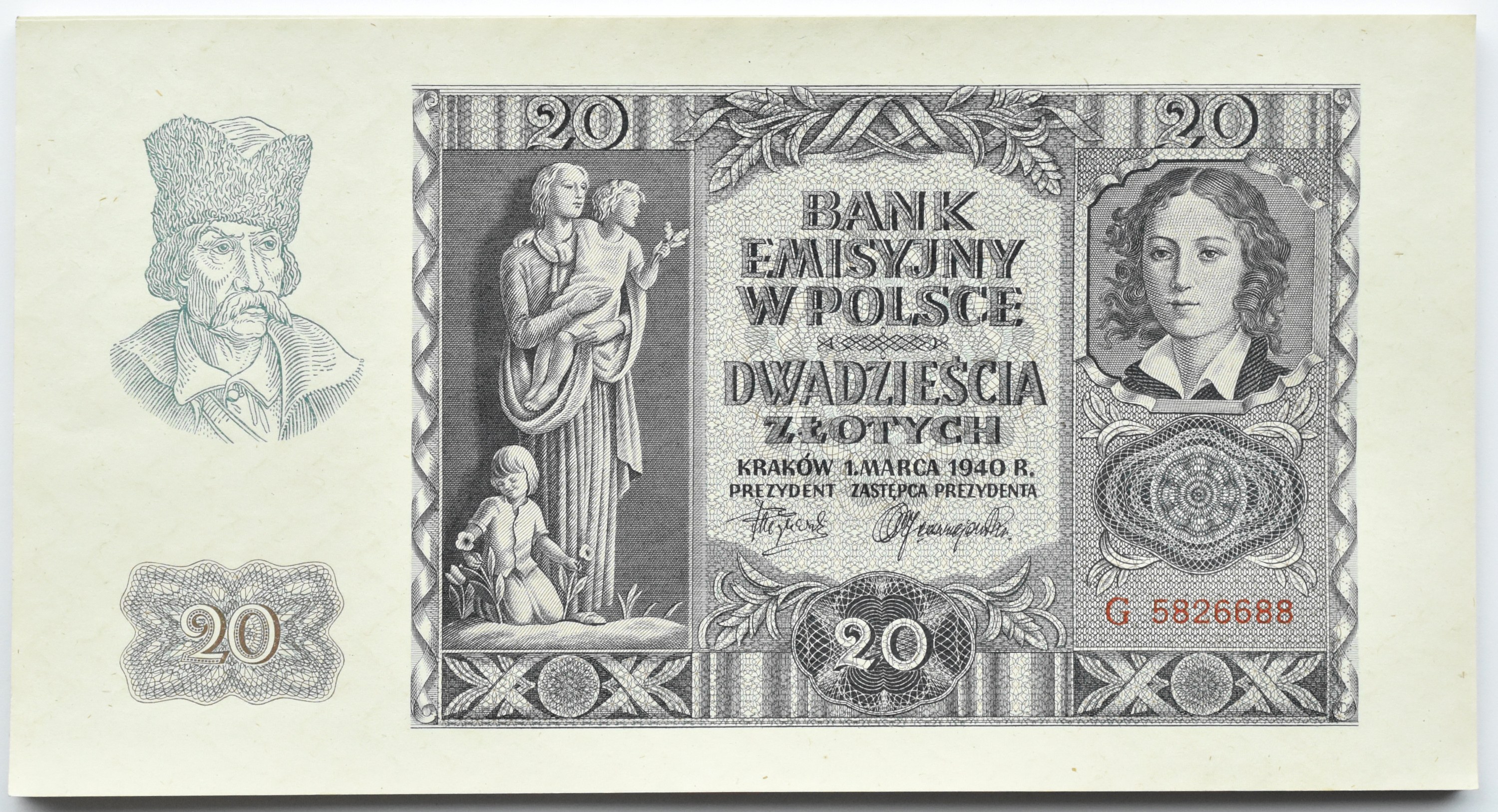 Polska, Generalna Gubernia, 20 złotych 1940, Kraków, seria G