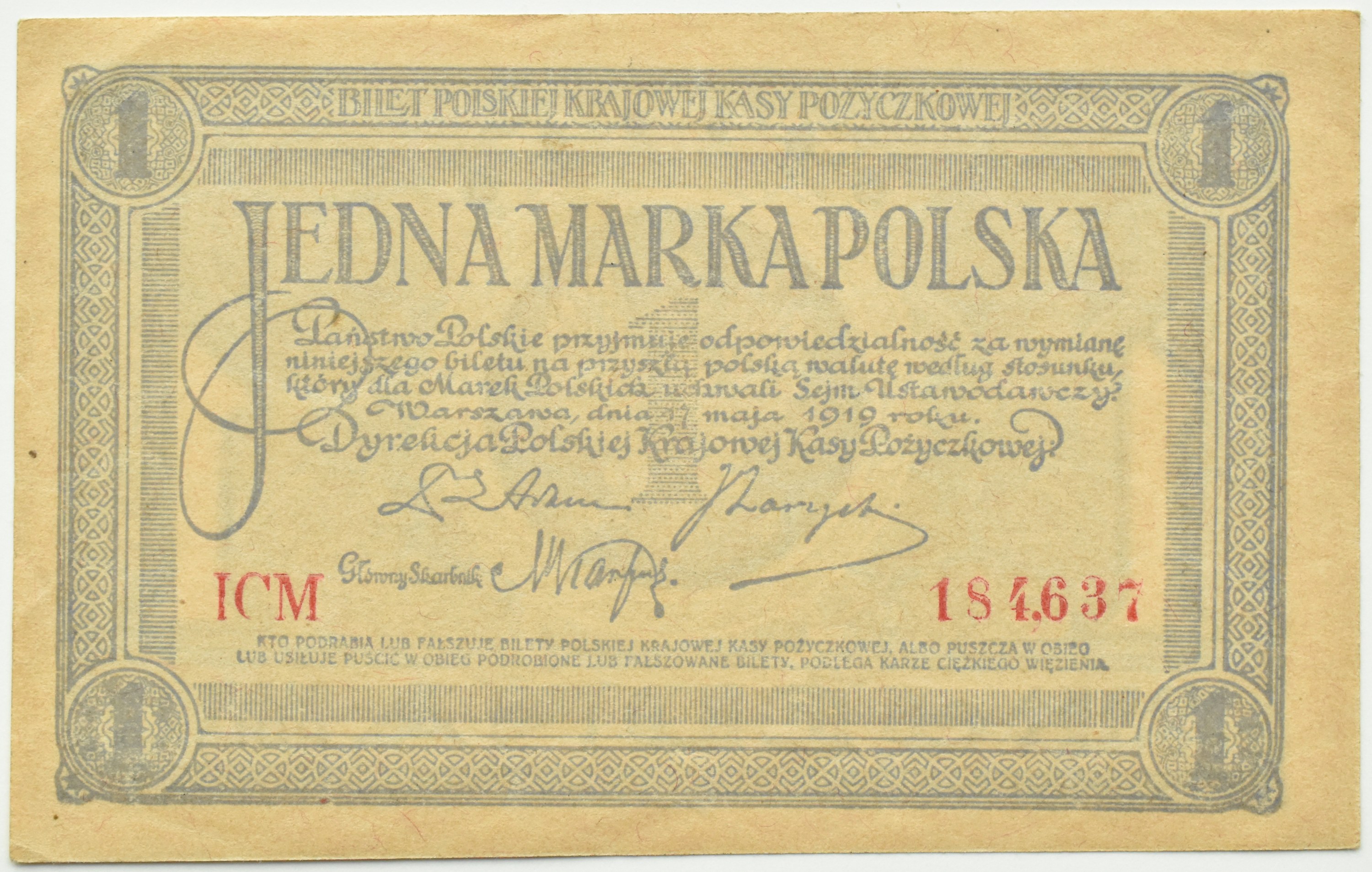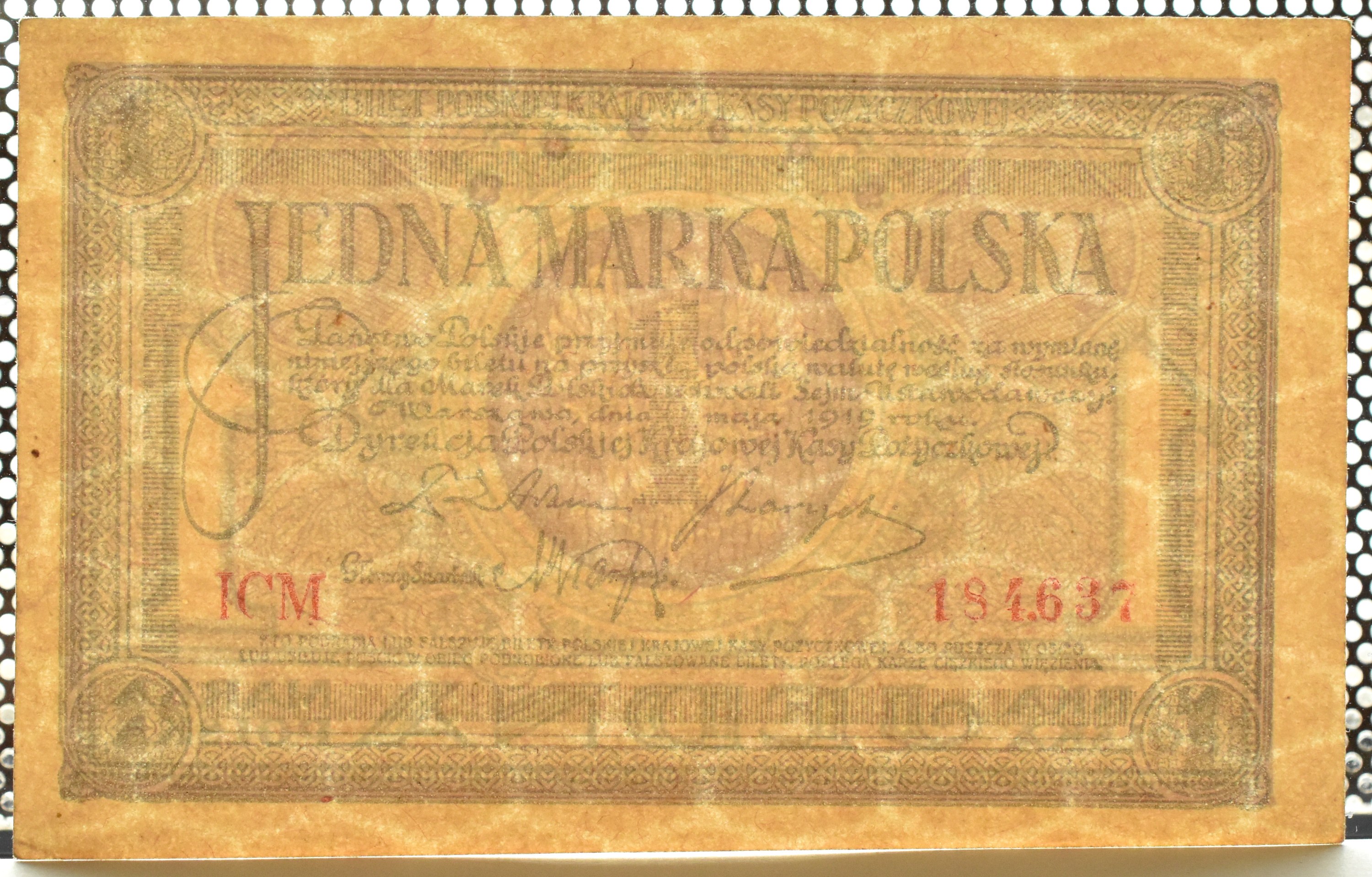 Polska, II RP, 1 marka 1919, I seria CM, Warszawa, UNC