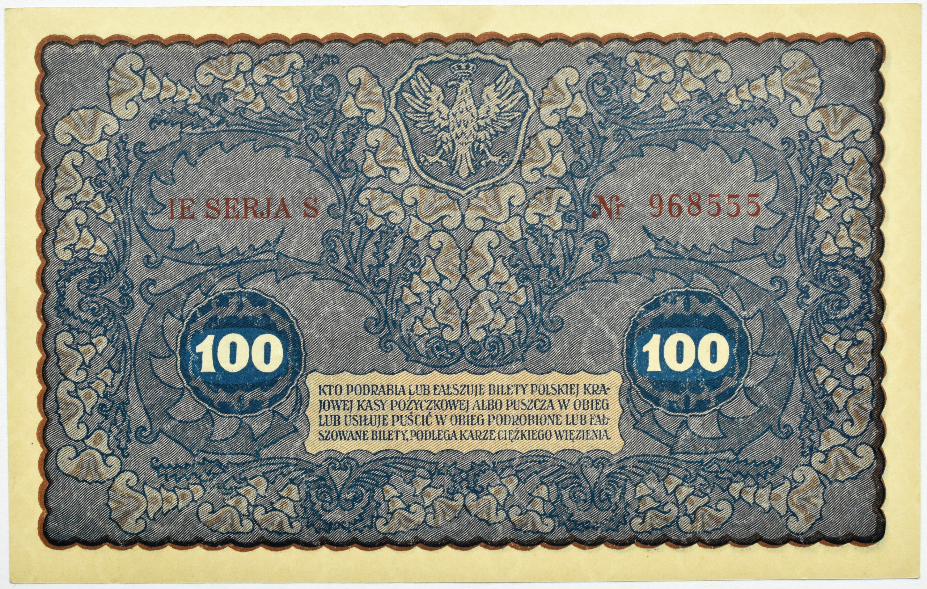 Polska, II RP, 100 marek 1919, IE seria S, UNC
