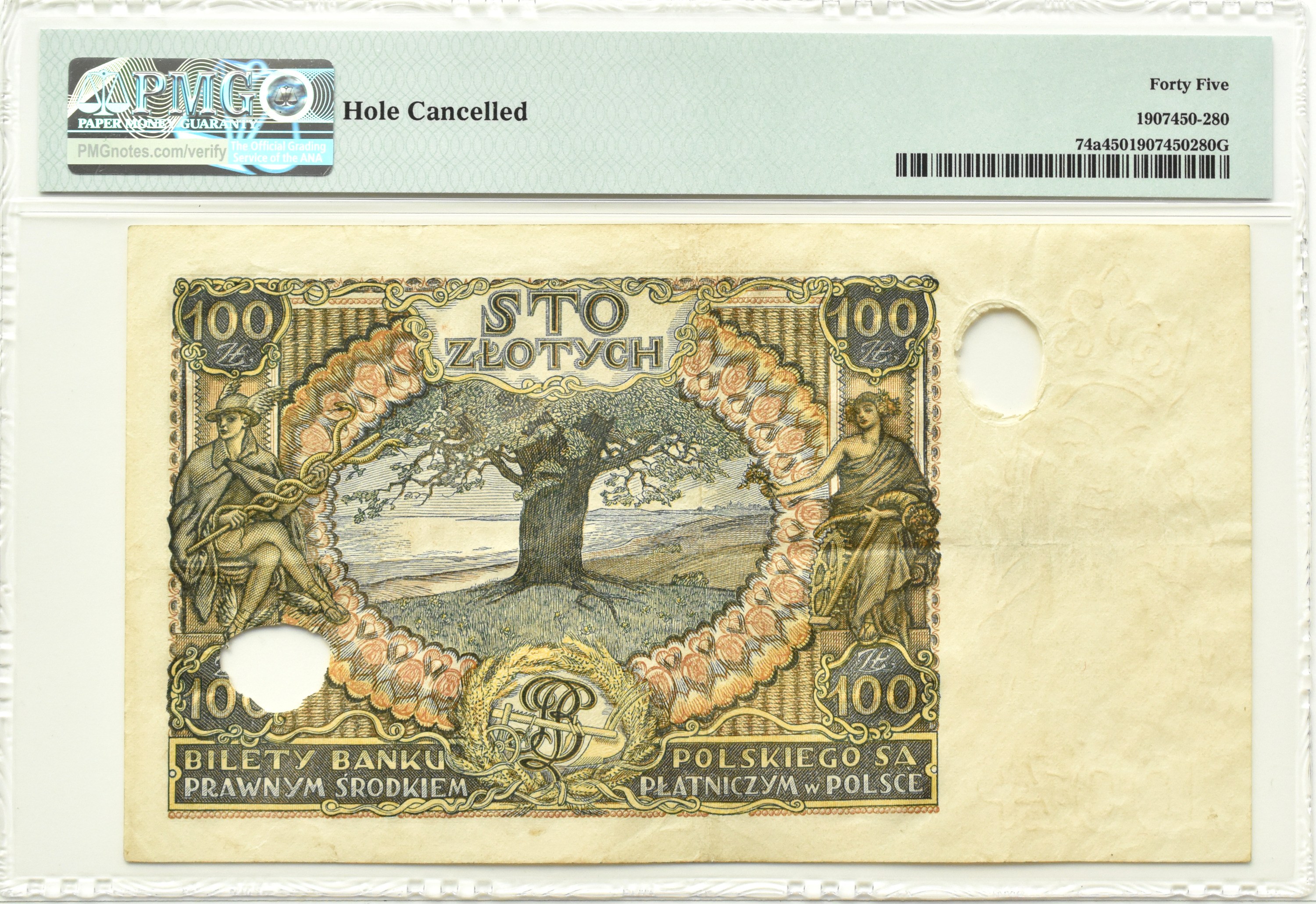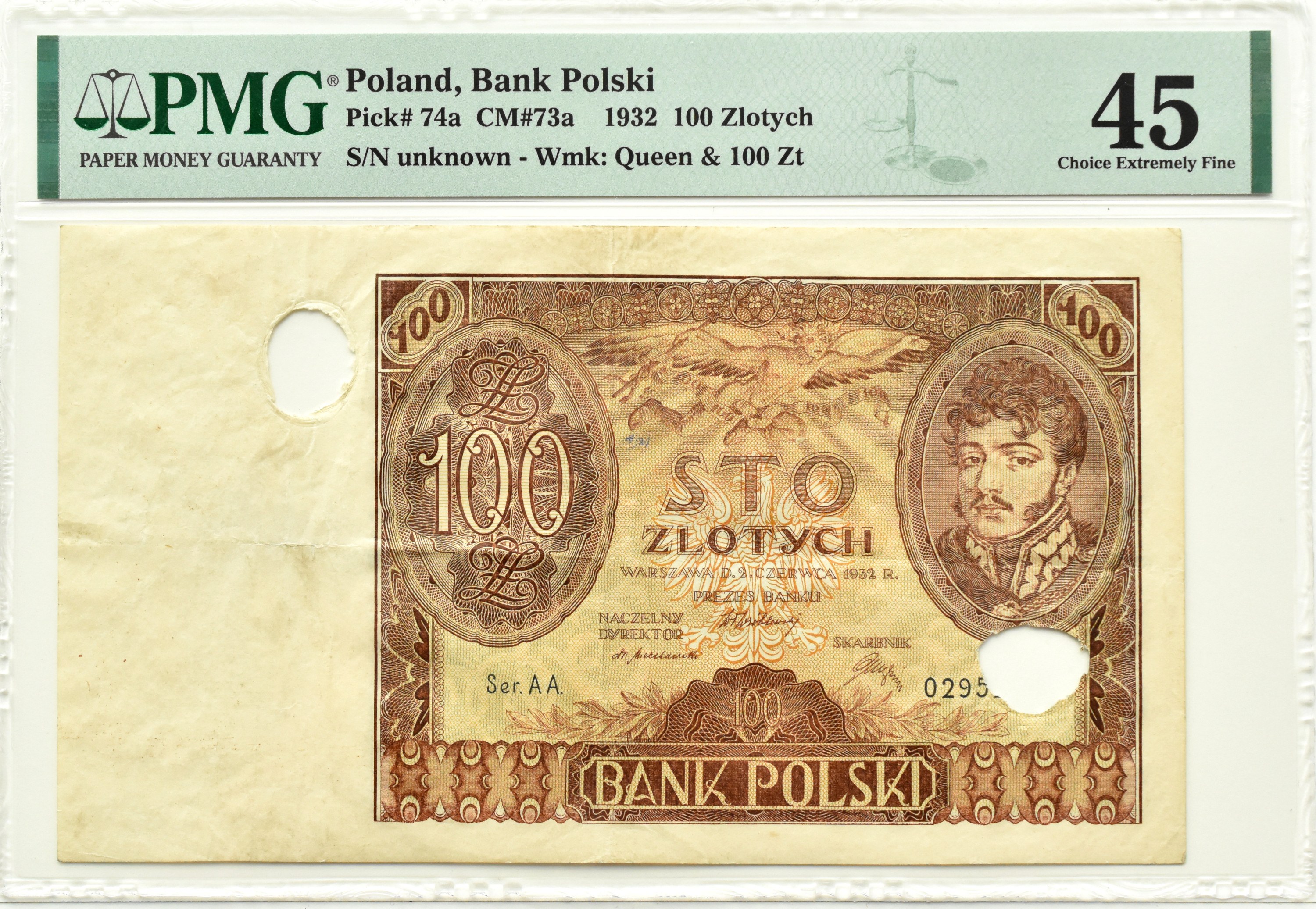 Polska, Generalna Gubernia, 100 złotych 1932, seria AA PERFORACJA, PMG 45
