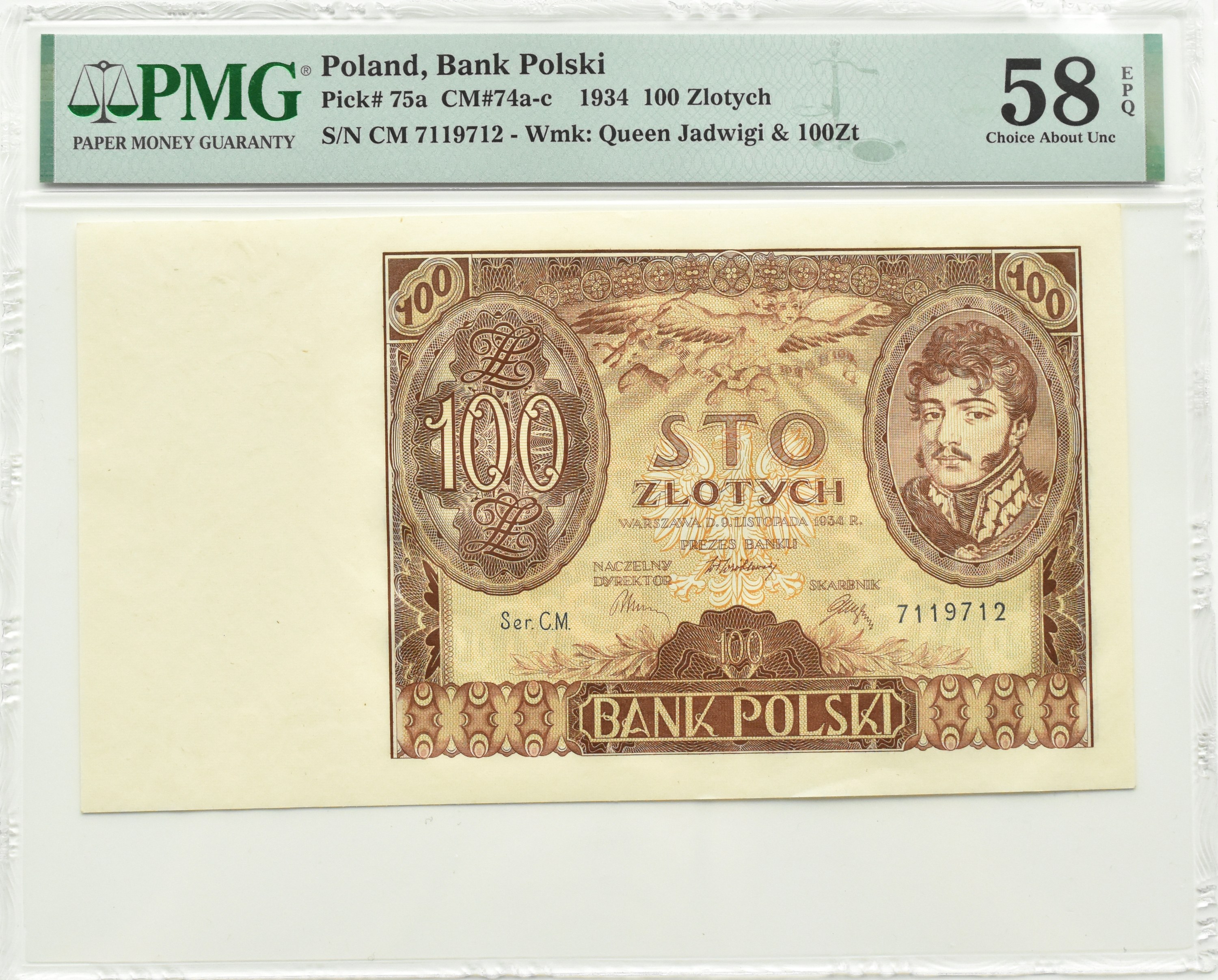 Polska, II RP, 100 złotych 1934, seria C.M., Warszawa, PMG 58 EPQ