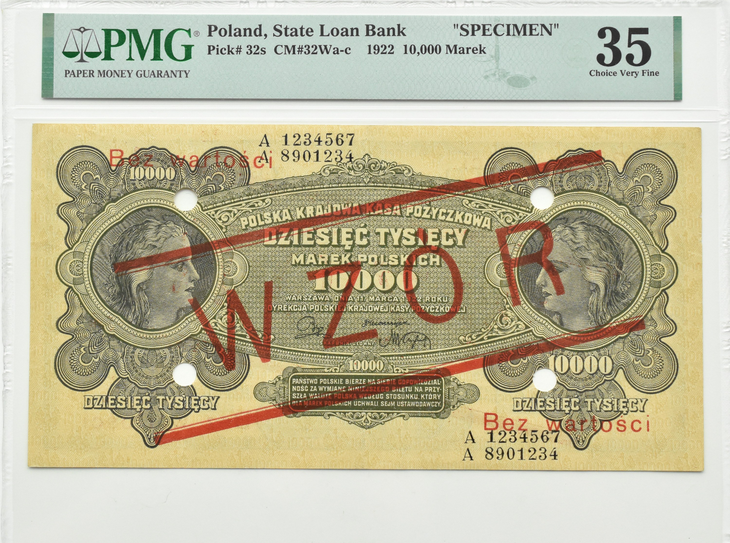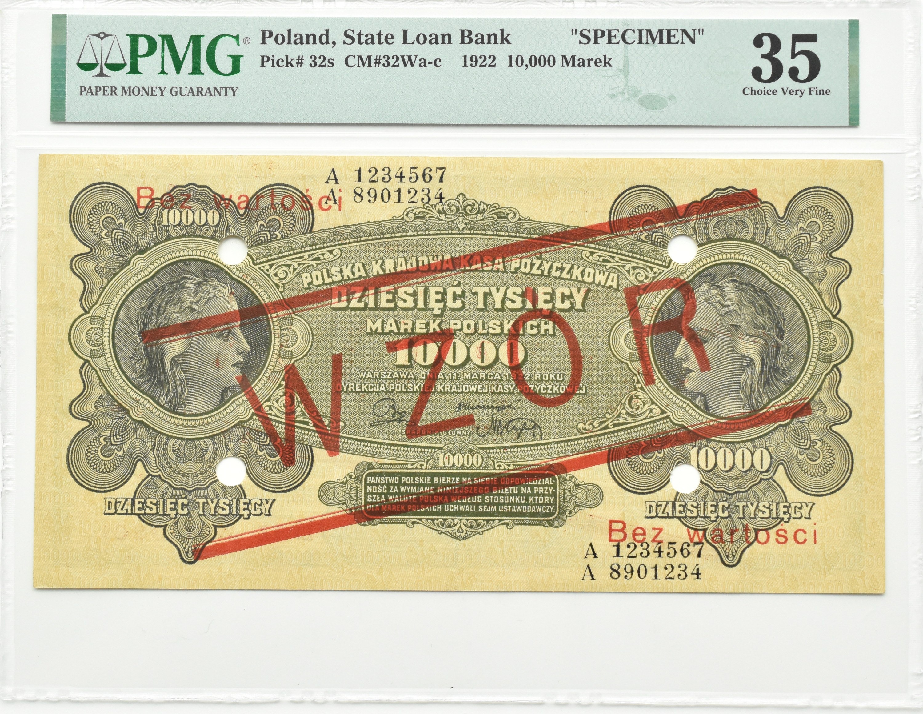 Polska, II RP, 10000 marek 1922, seria A-WZÓR, Warszawa, PMG 35
