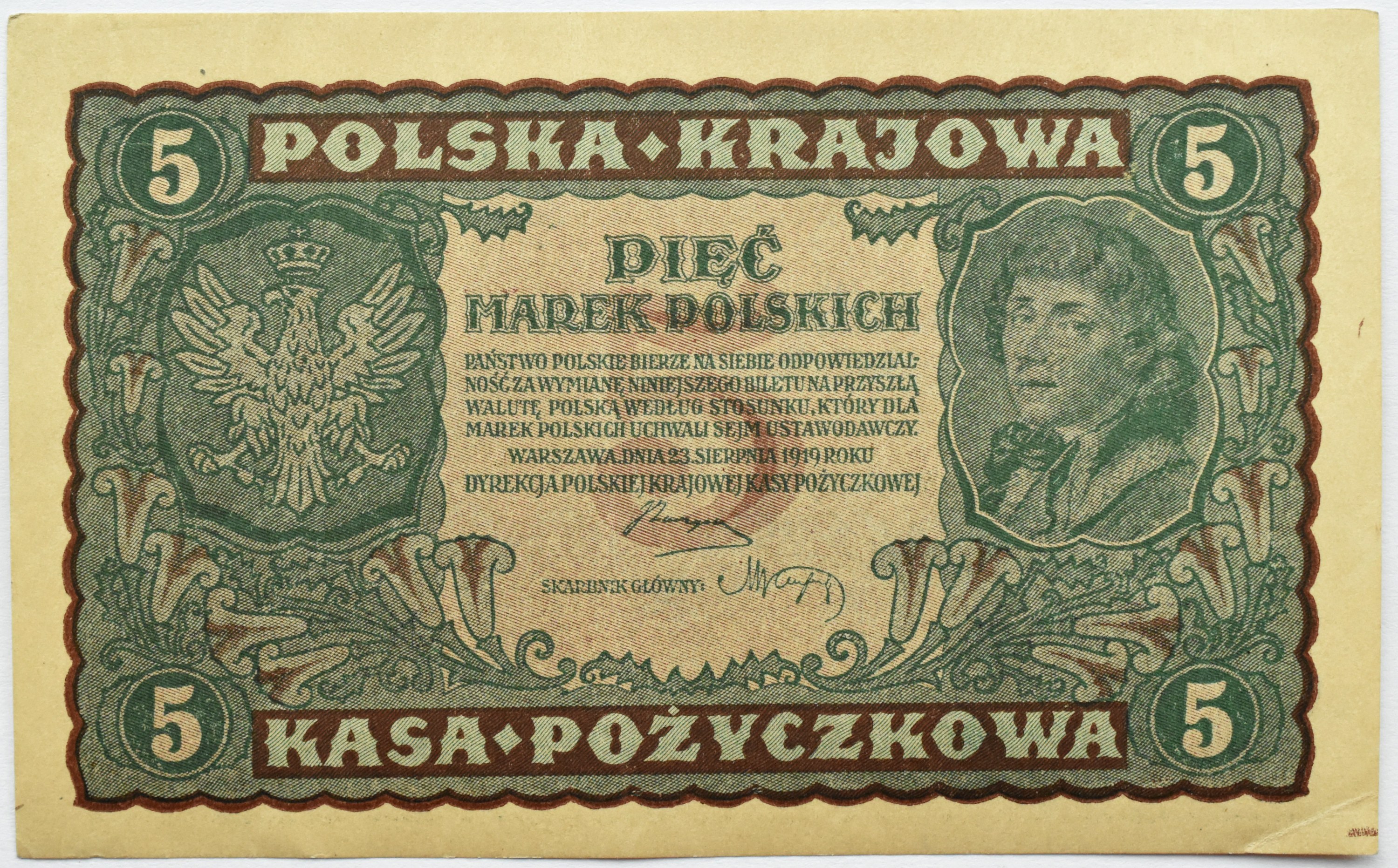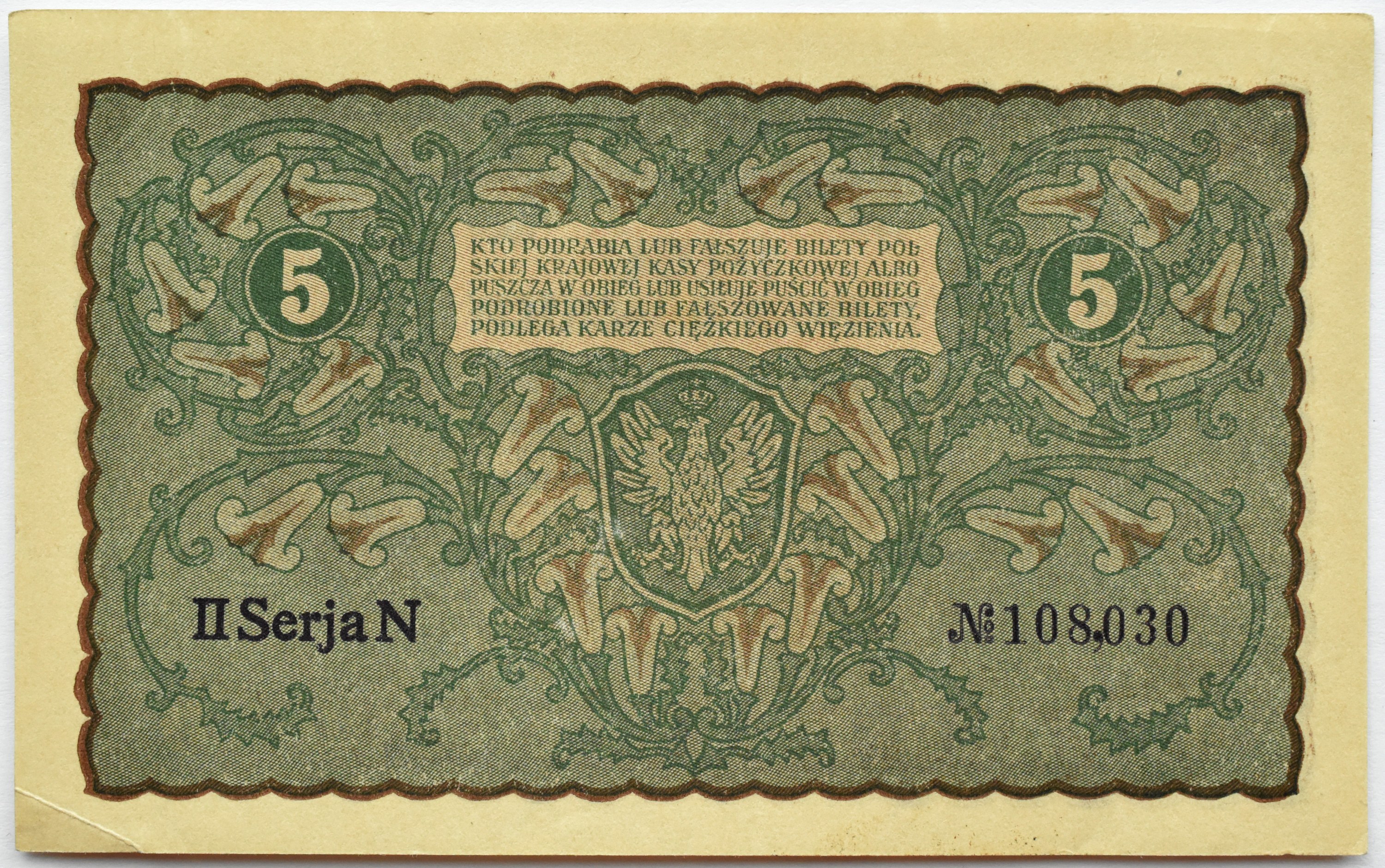 Polska, II RP, 5 marek 1919, II seria N, Warszawa
