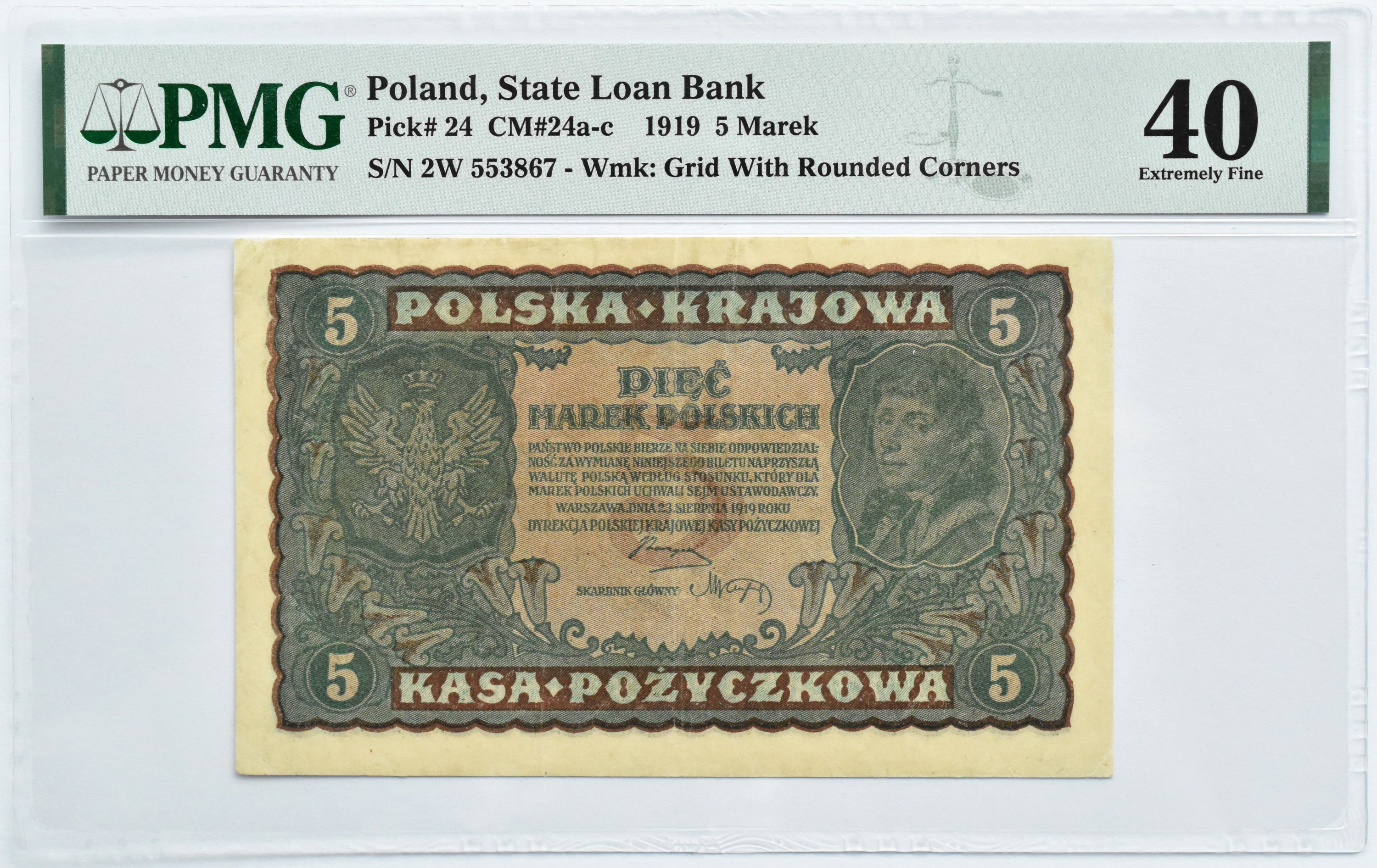 Polska, II RP, 5 marek 1919, II seria W, Londyn, PMG 40