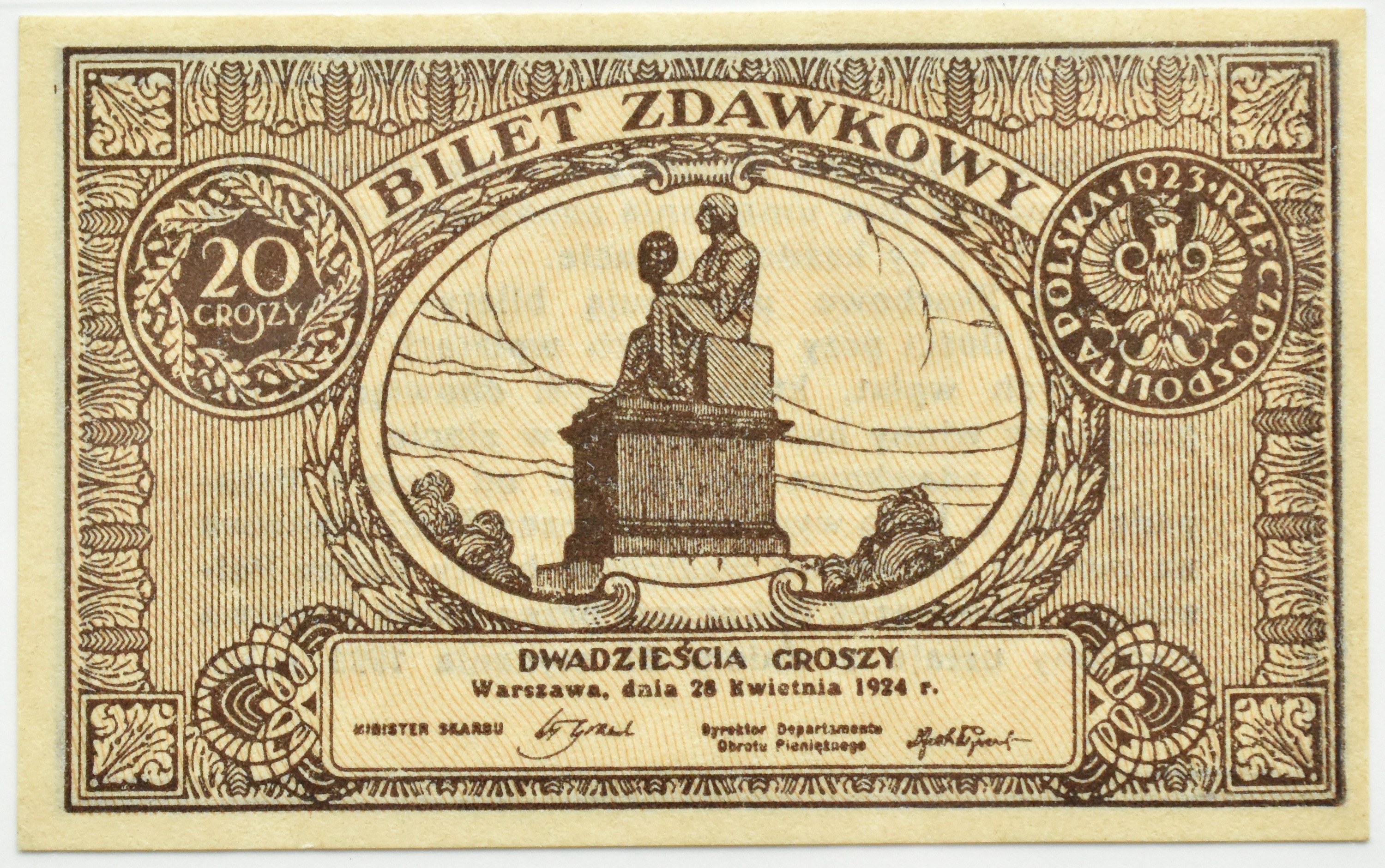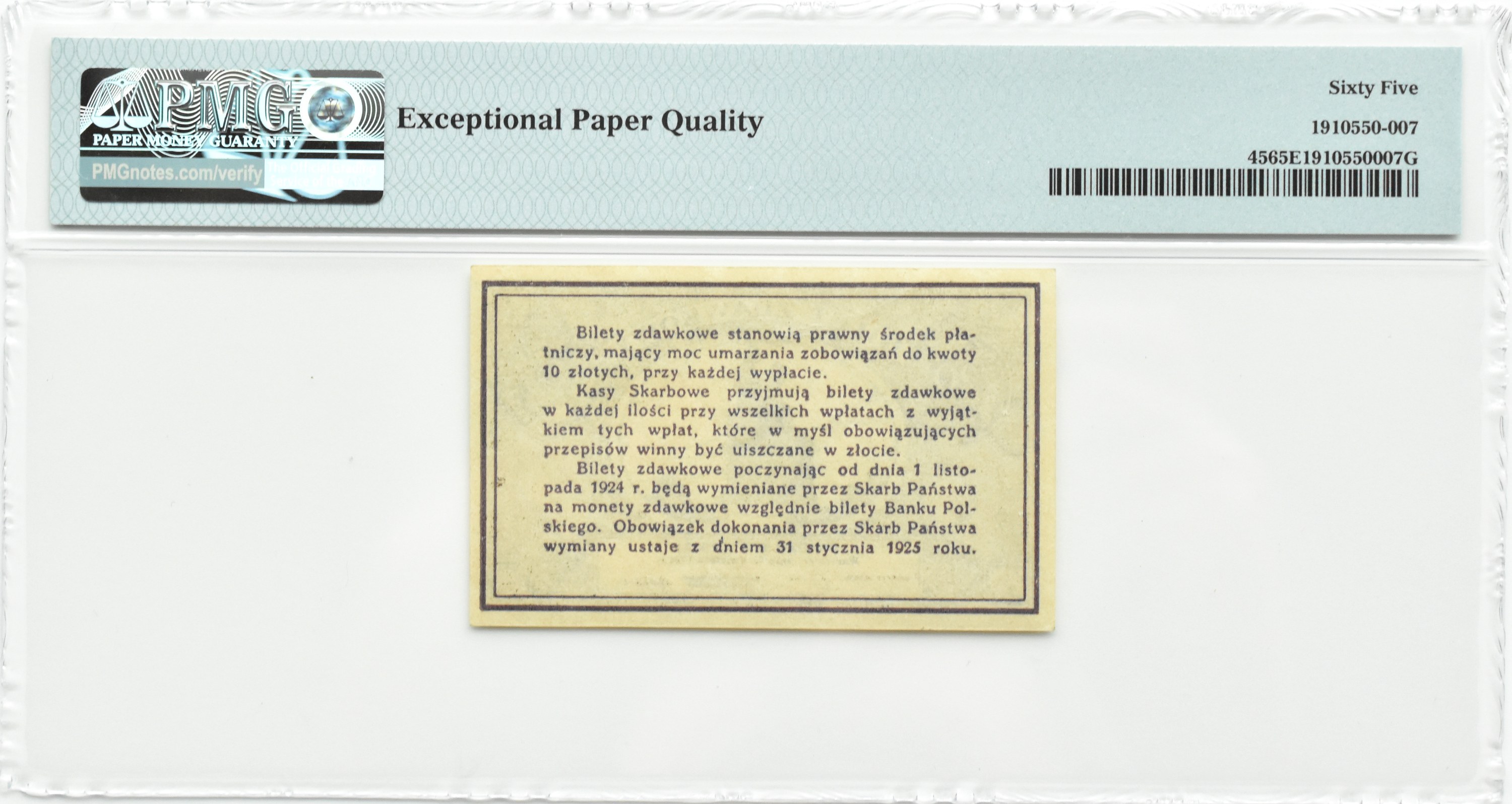 Polska, II RP, bilet zdawkowy, 20 groszy 1924, Warszawa, PMG 65 EPQ