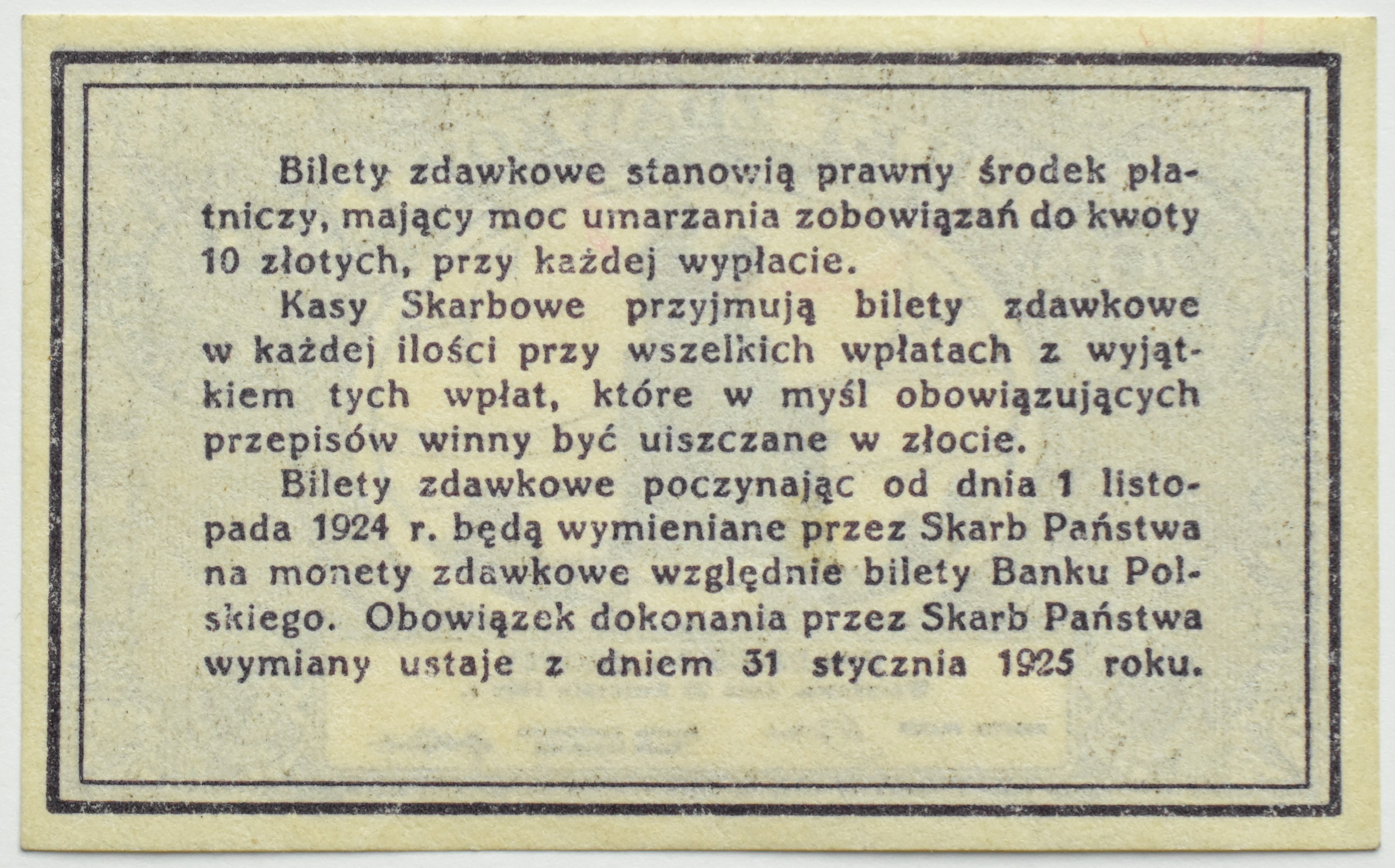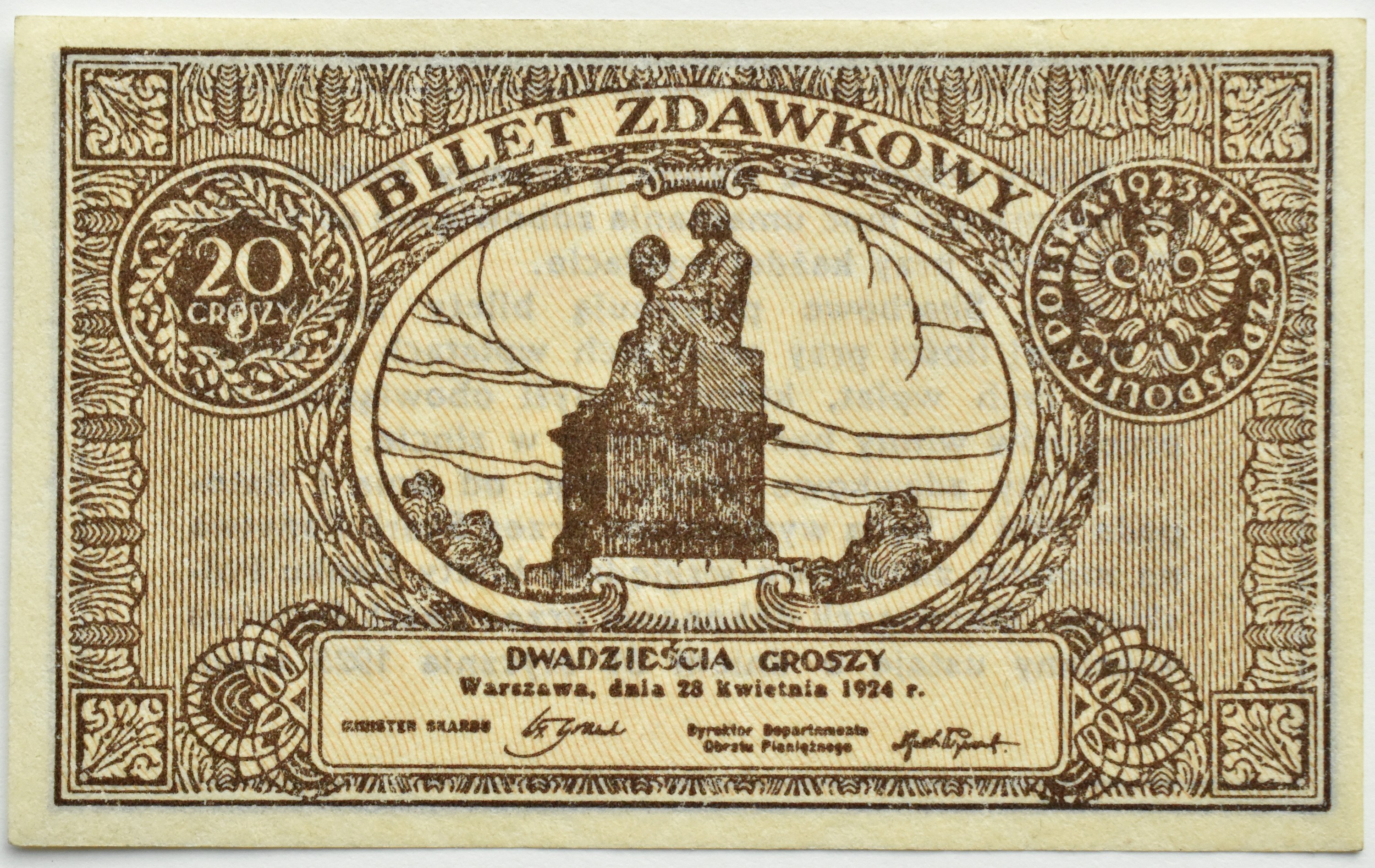 Polska, II RP, bilet zdawkowy, 20 groszy 1924, Warszawa, UNC