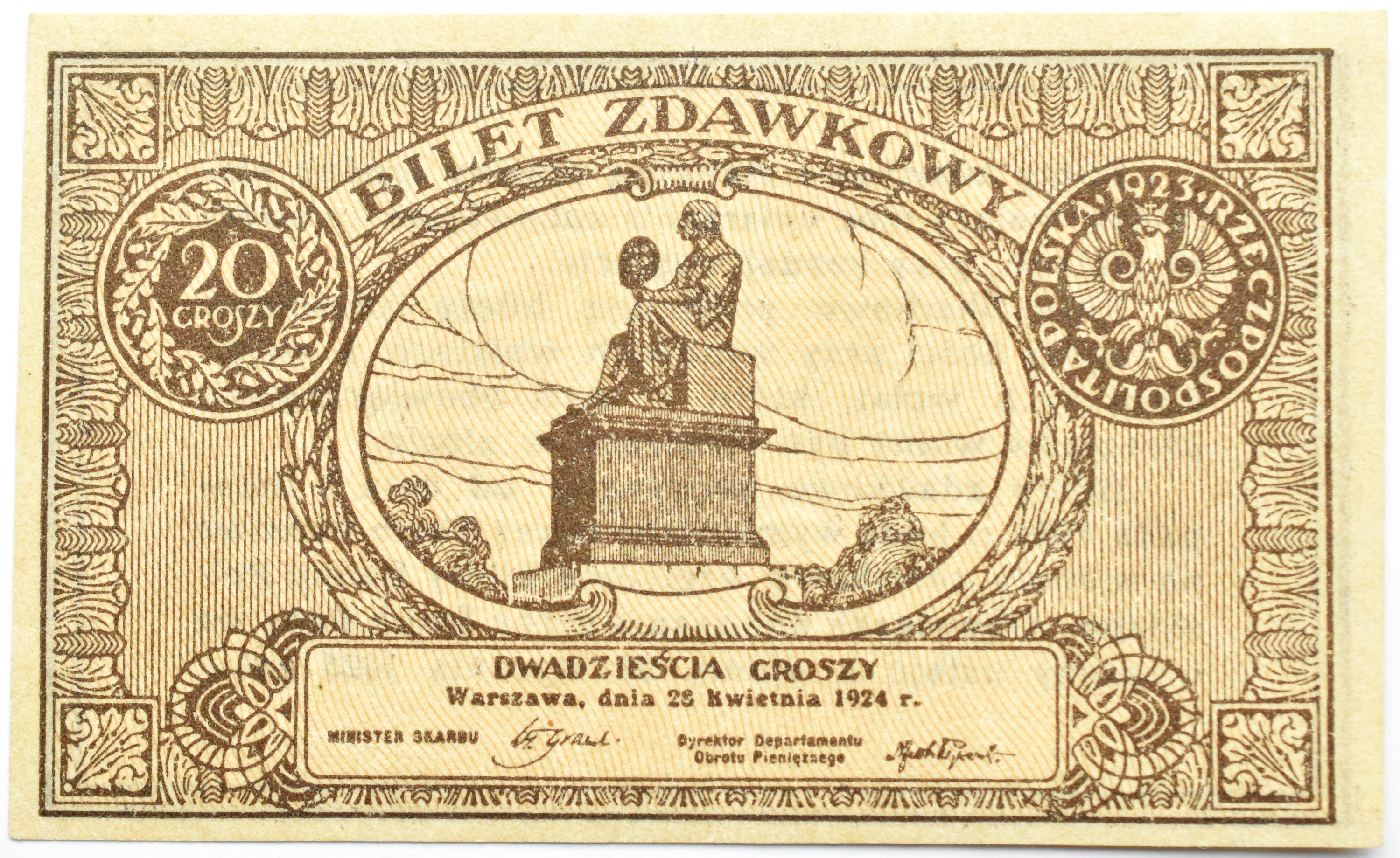 Polska, II RP, bilet zdawkowy, 20 groszy 1924, Warszawa