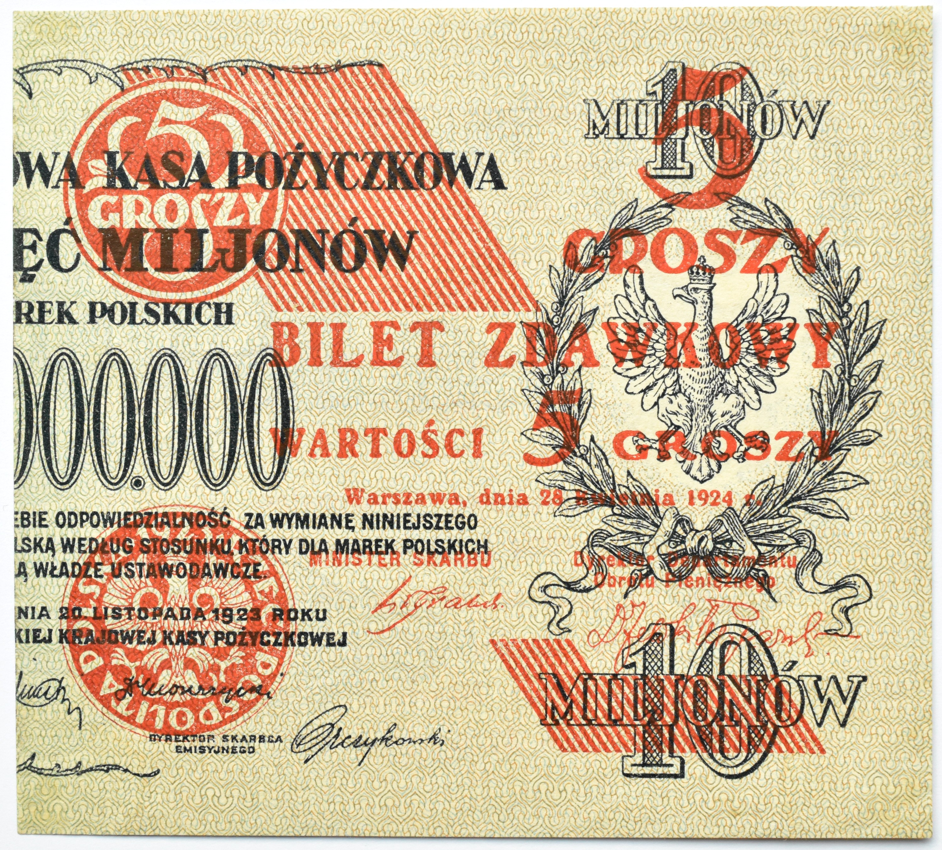 Polska, II RP, bilet zdawkowy, 5 groszy 1924 (prawa część)