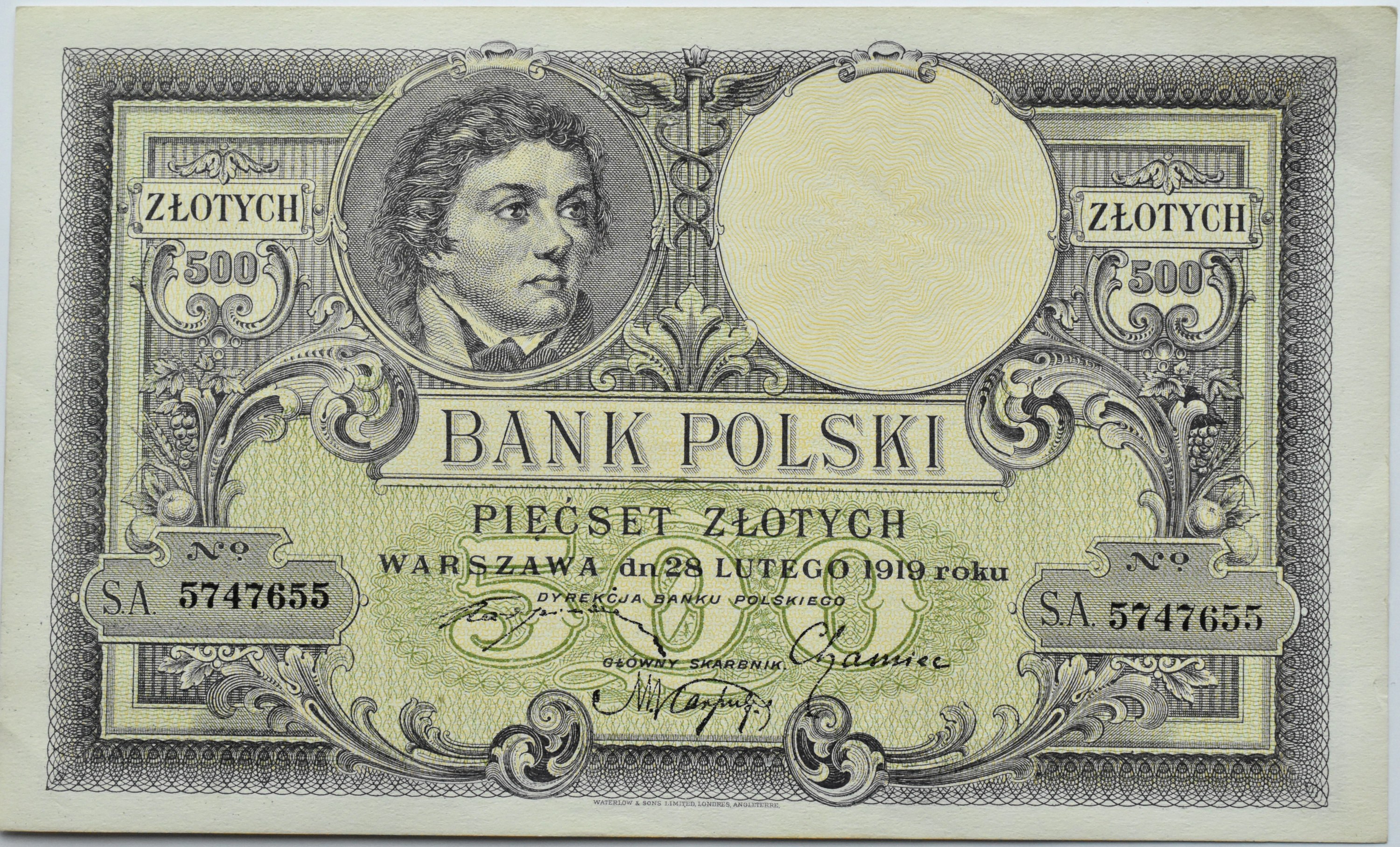 Polska, II RP, Tadeusz Kościuszko, 500 złotych 1919, Warszawa