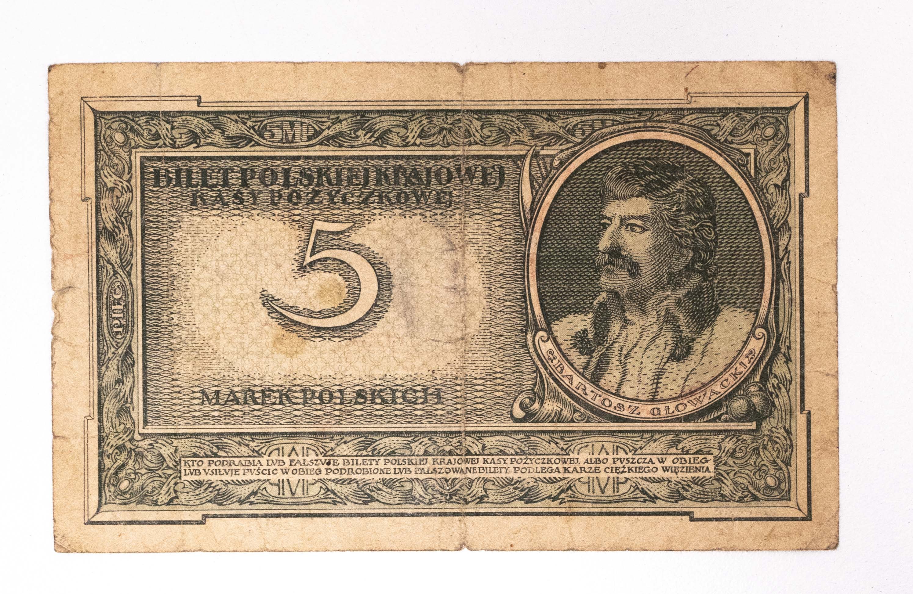 Z długiego obiegu, papier miękki, prześwity. Przy nominałach dodatkowe graffiti. Seria E 522131.
