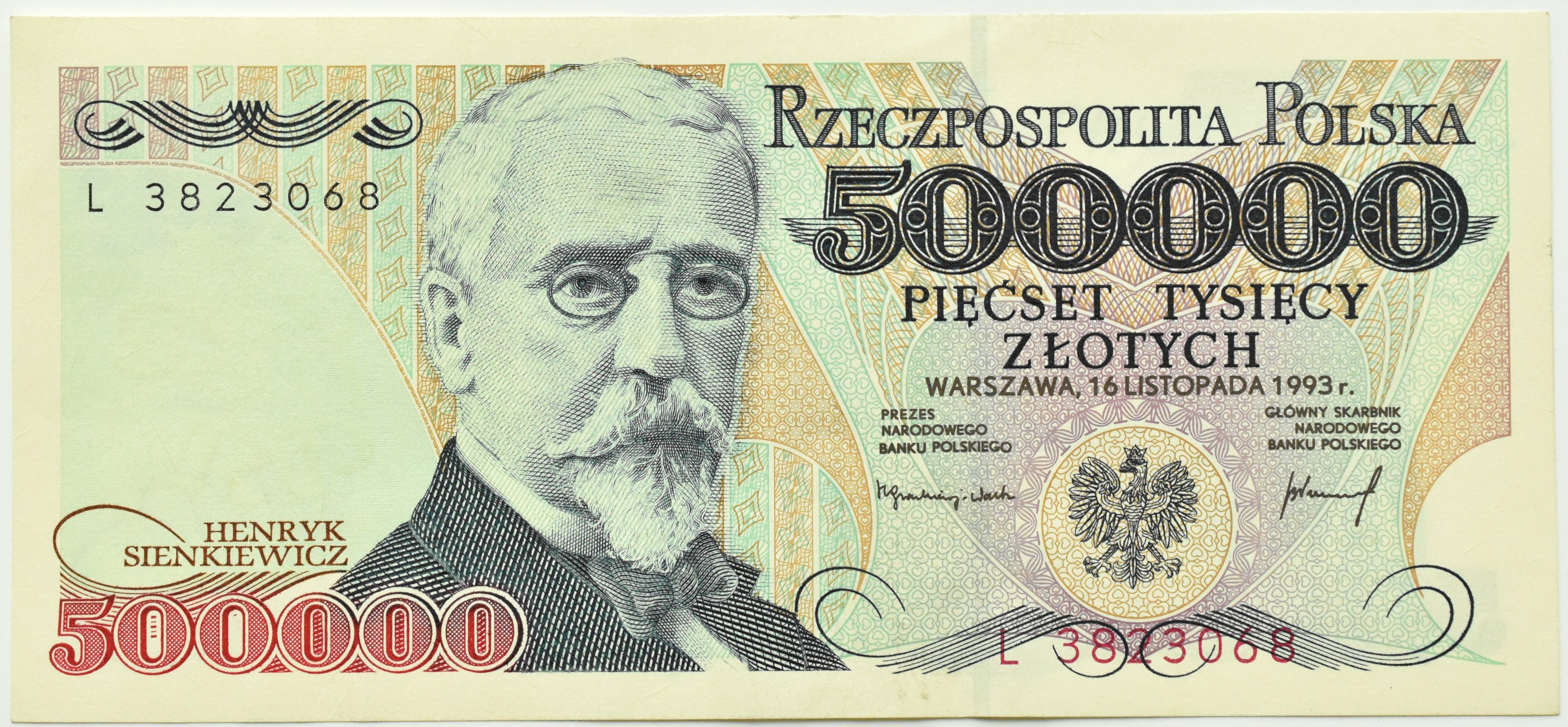 Polska, III RP, Henryk Sienkiewicz, 500000 złotych 1993, seria L, Warszawa