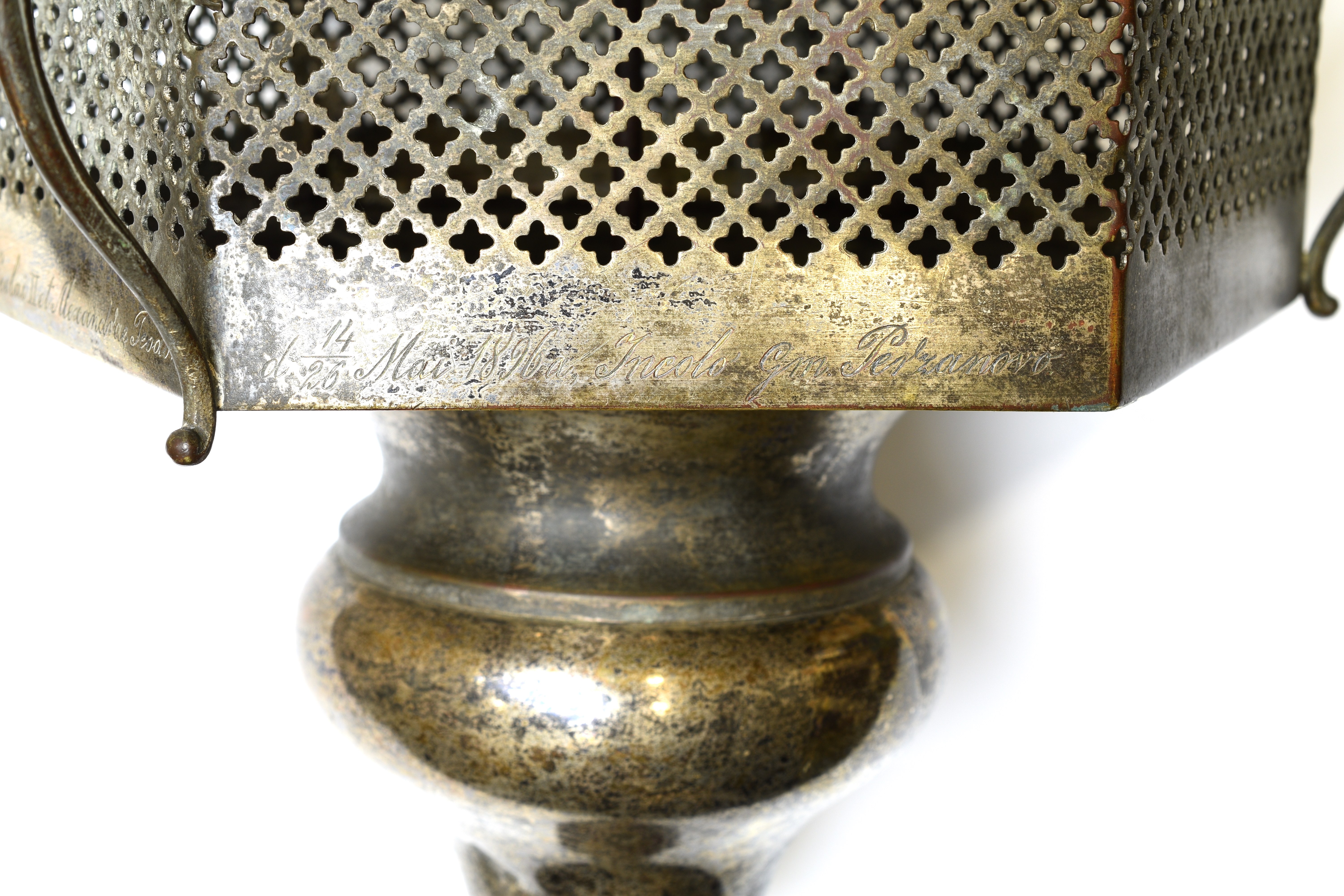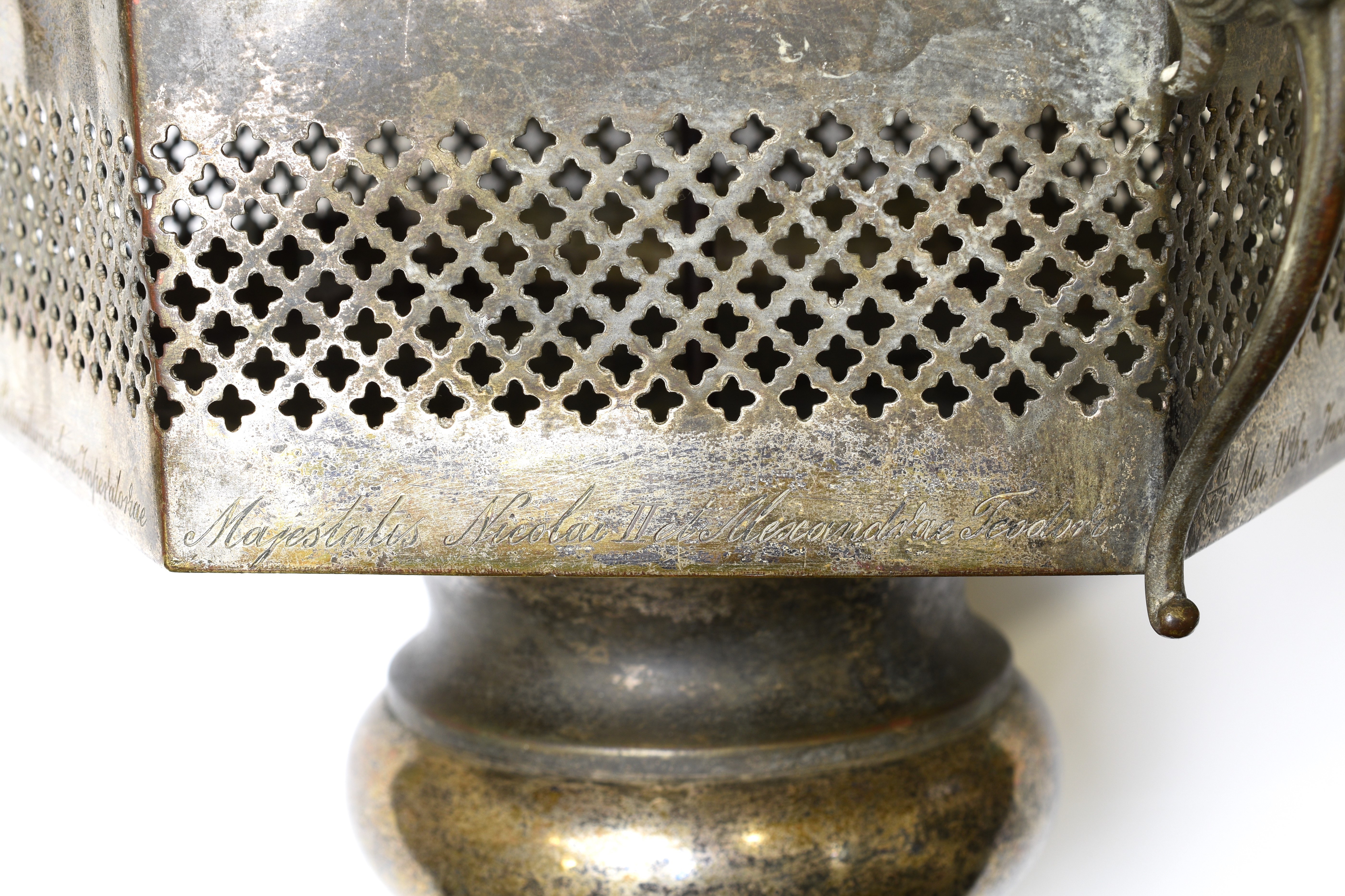 Bardzo ciekawa 3-częściowa lampa kościelna ufundowana przez mieszkańców gminy Perzanowo z okazji koronacji Mikołaja II na cara Rosji.