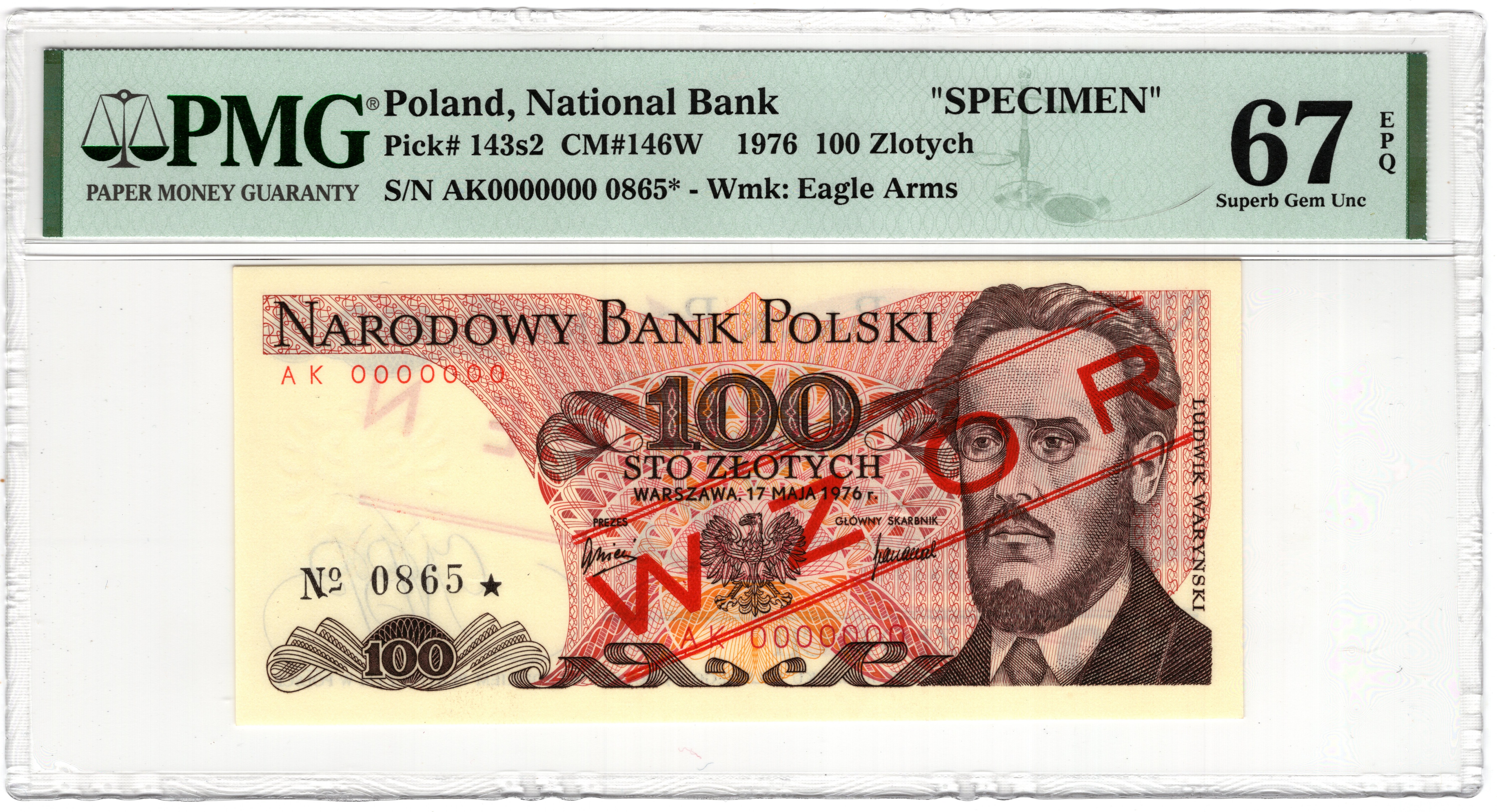 Polska, PRL, 100 złotych 1976, seria AK, WZÓR No 0865 - PMG 67 EPQ