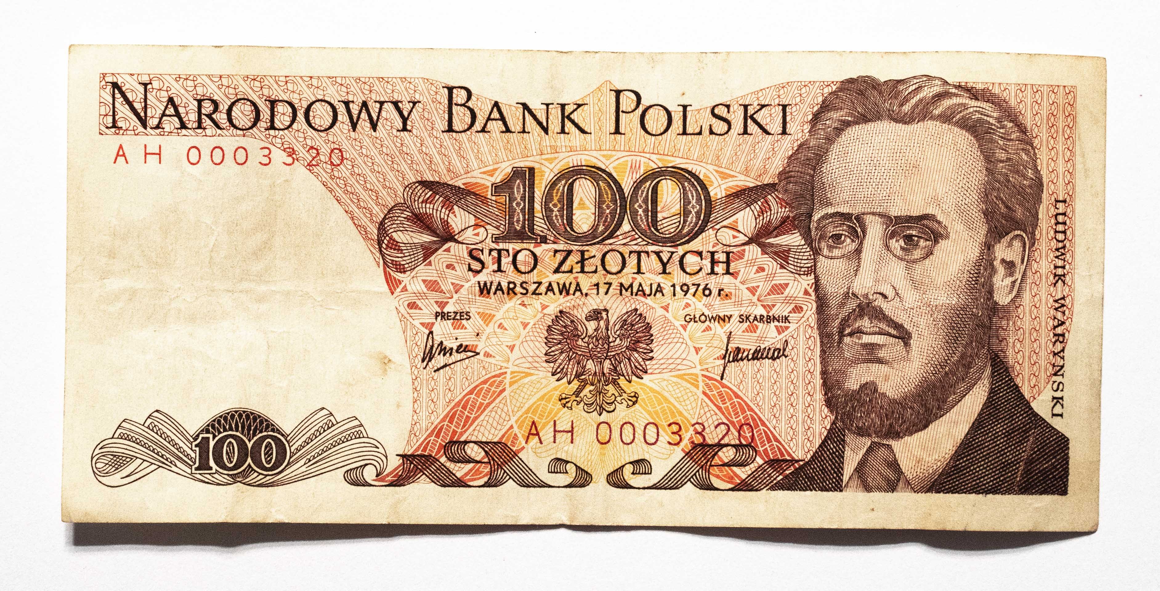 Wielokrotnie złamany i ugięty ale papier dość sztywny. Banknot II emisji. Seria AH 0003320. Niski numer.