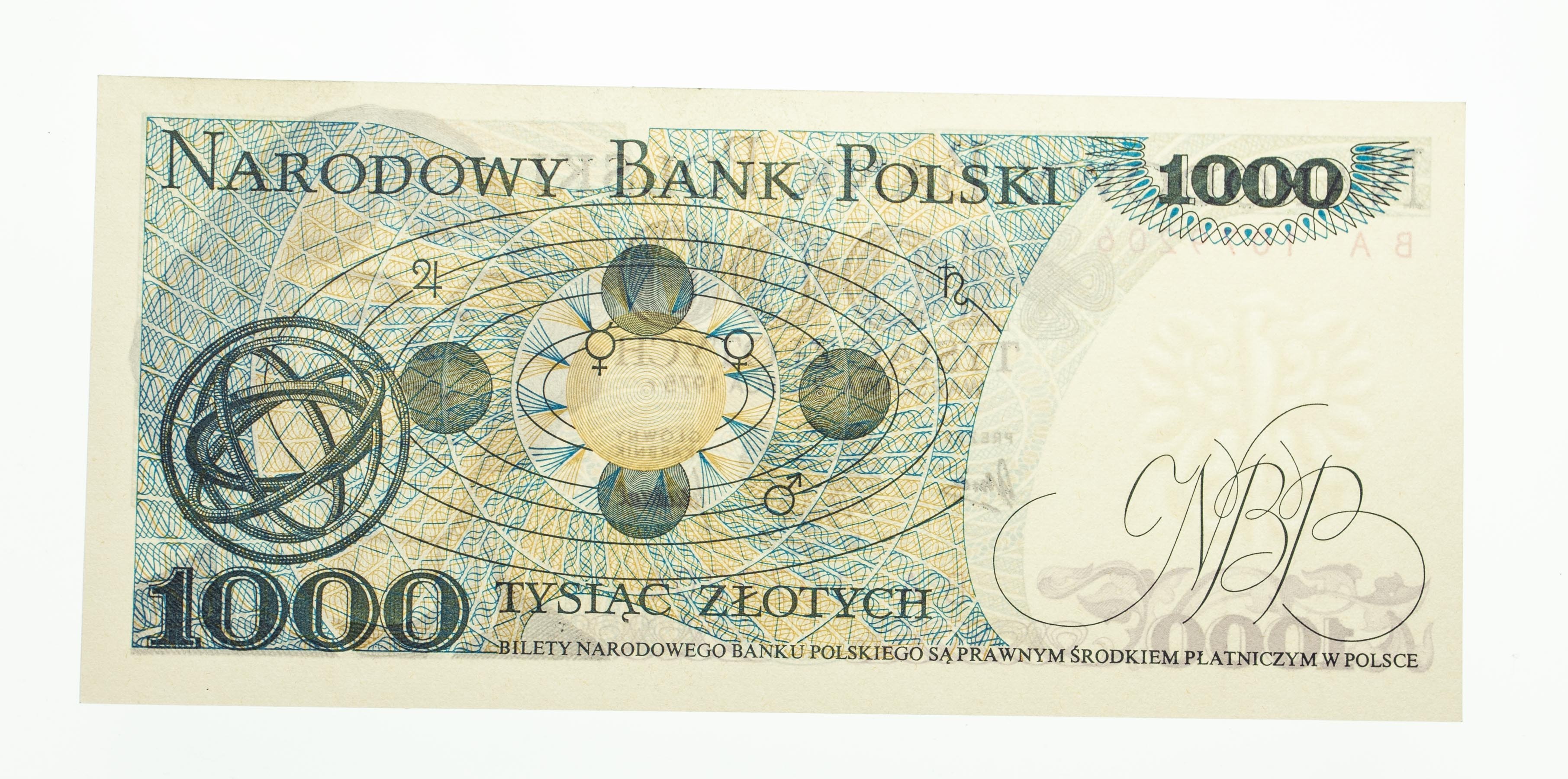 Emisyjny stan zachowania. Delikatny zagniotek przy górnym marginesie. Banknot I emisji. Seria BA 1079206.