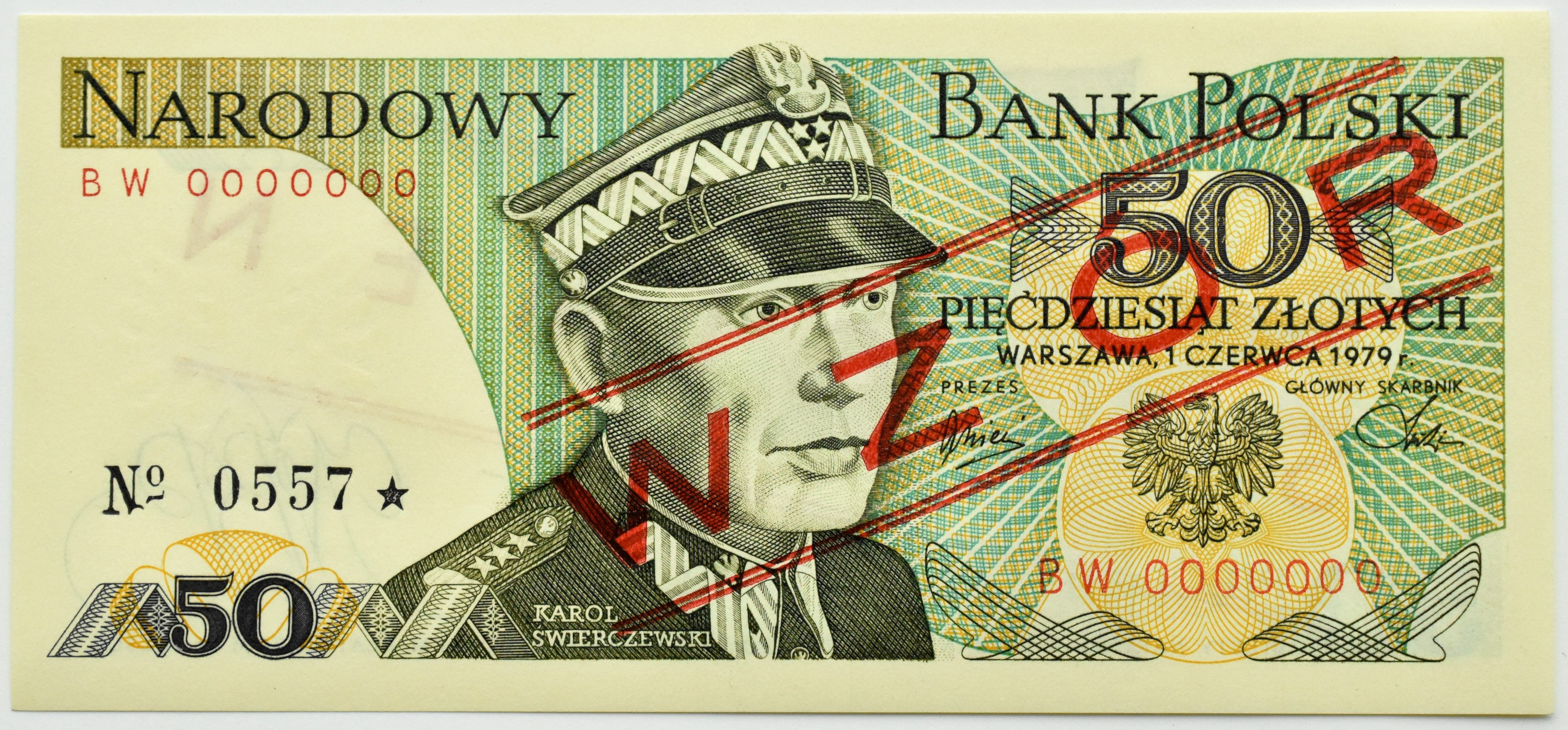 Polska, PRL, 50 złotych 1979, seria BW WZÓR 0557*, Warszawa, UNC