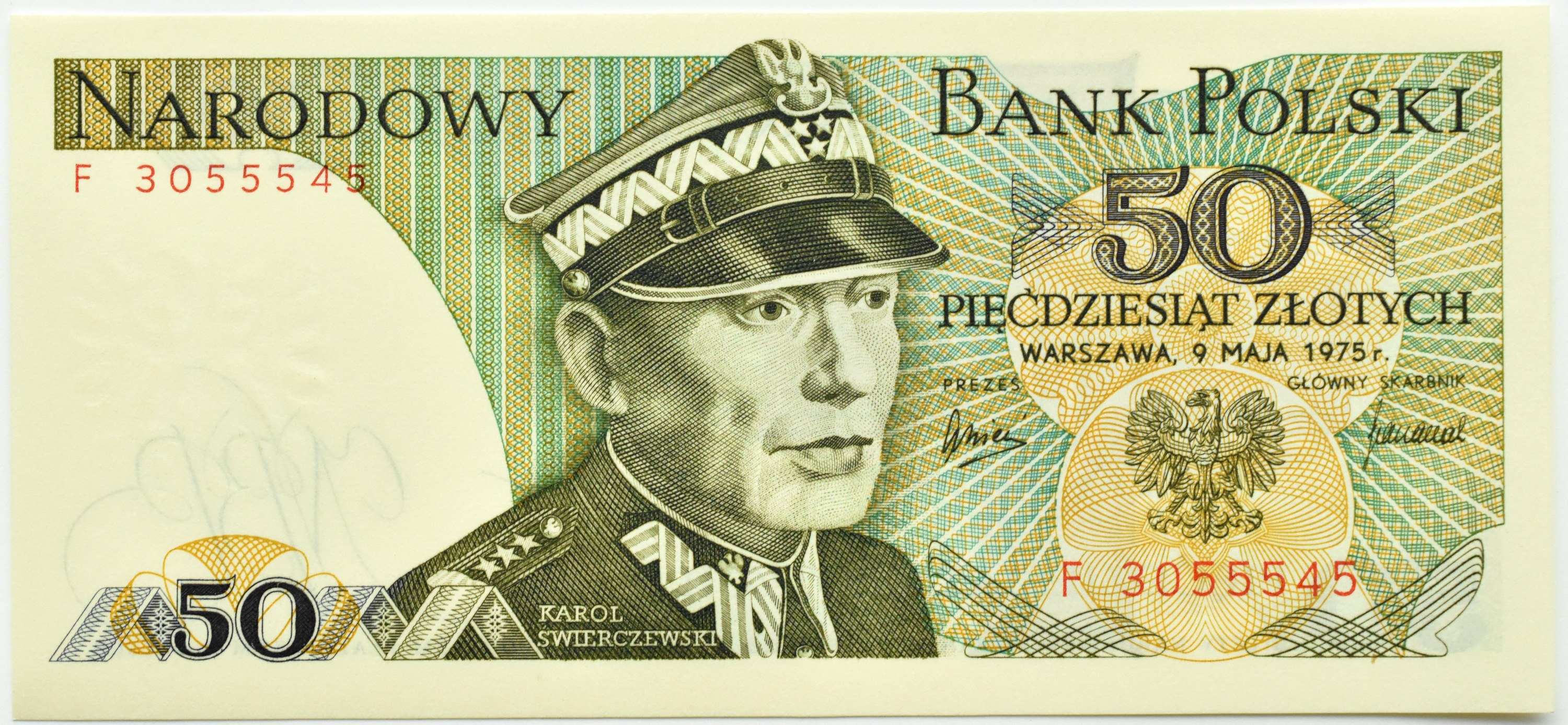 Polska, PRL, gen. Karol Świerczewski, 50 złotych 1975, seria F, Warszawa, UNC