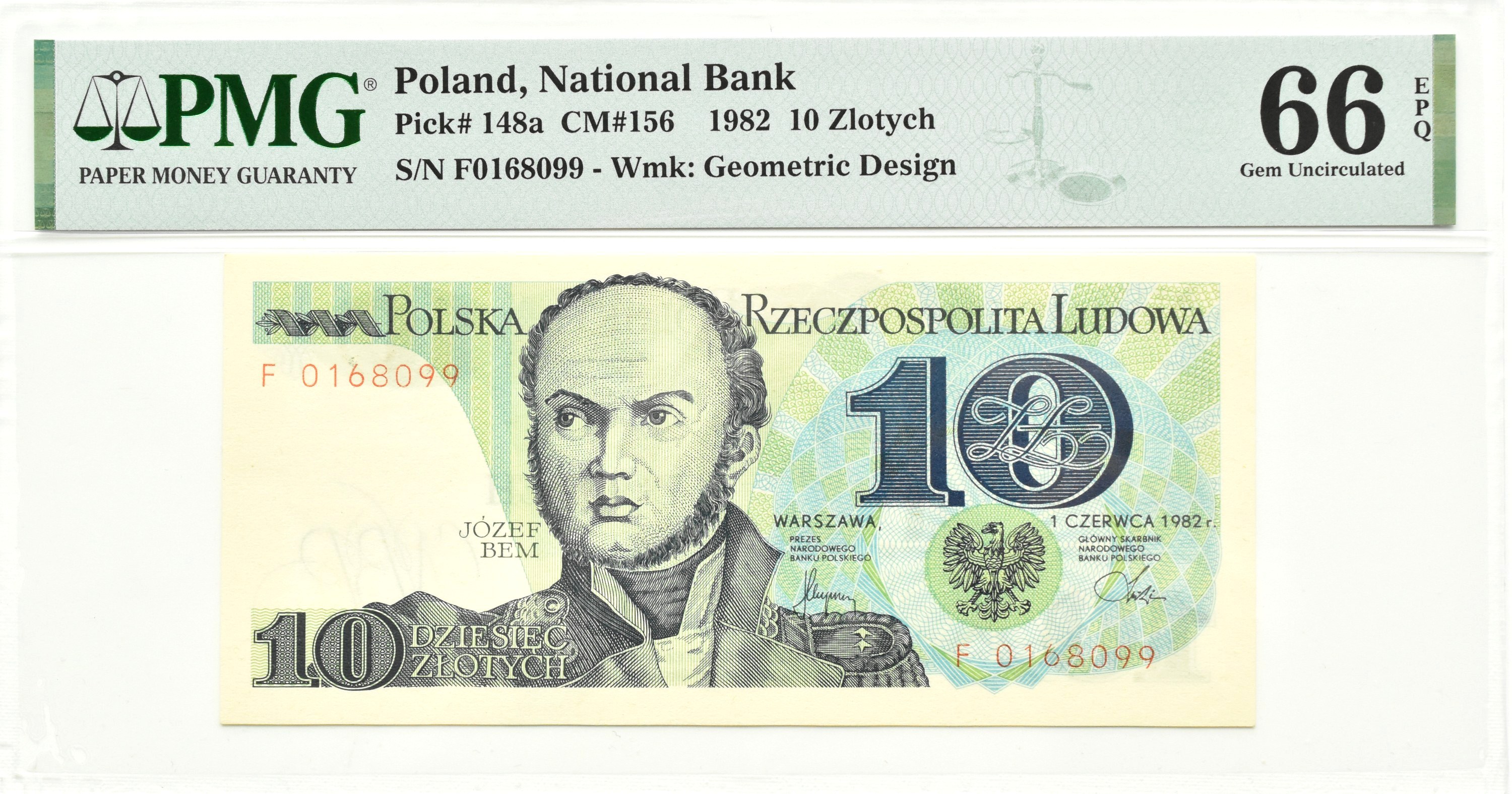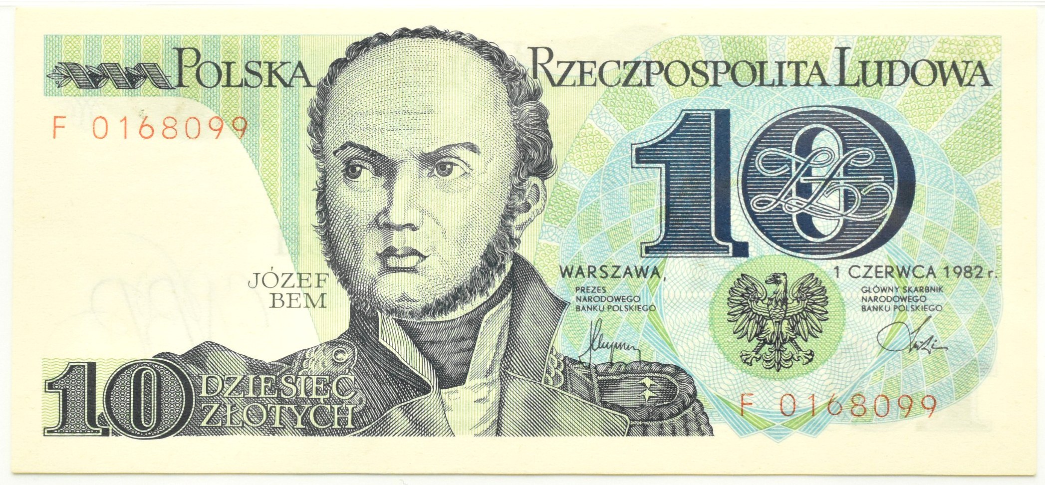 Polska, PRL, Józef Bem, 10 złotych 1982, seria F, Warszawa, PMG 66 EPQ