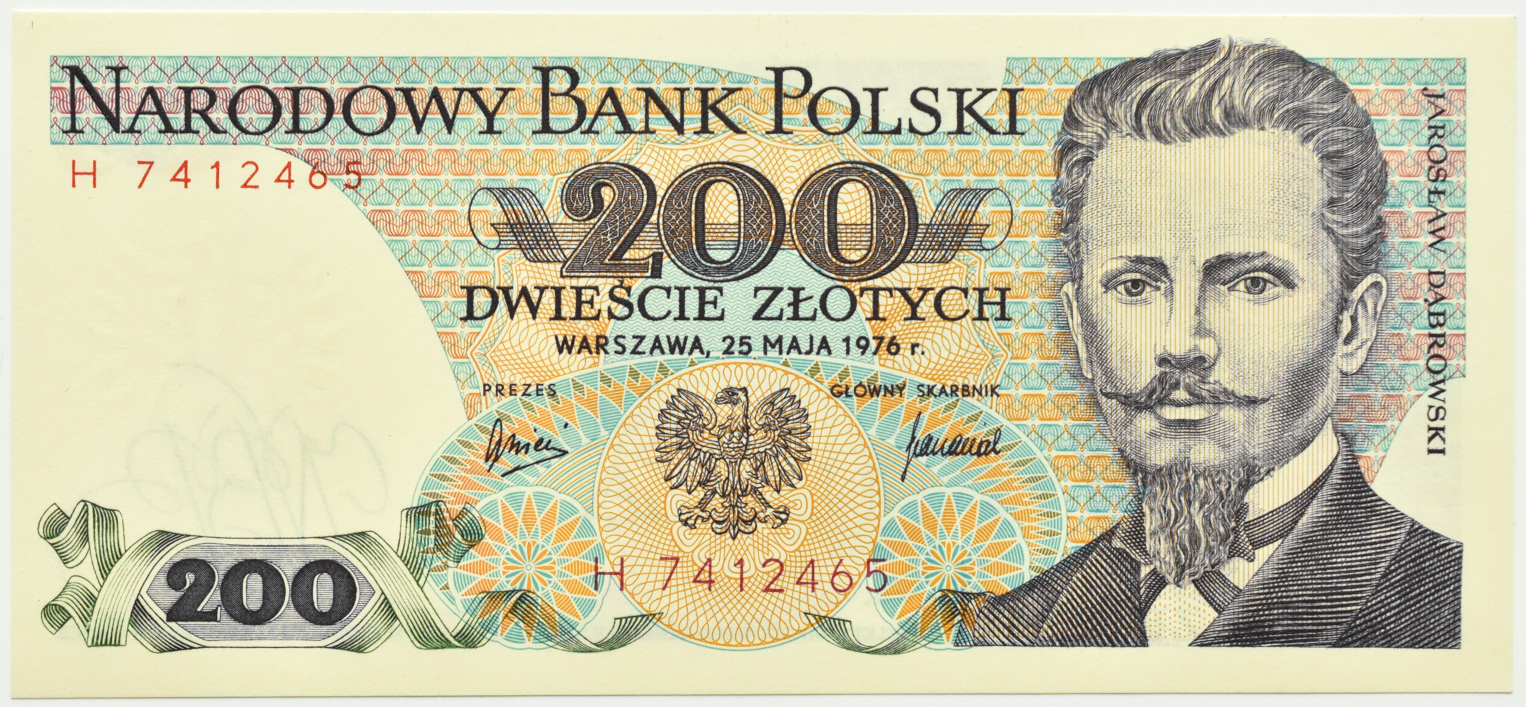 Polska, PRL, Jarosław Dąbrowski, 200 złotych 1976, seria H741….., Warszawa, UNC