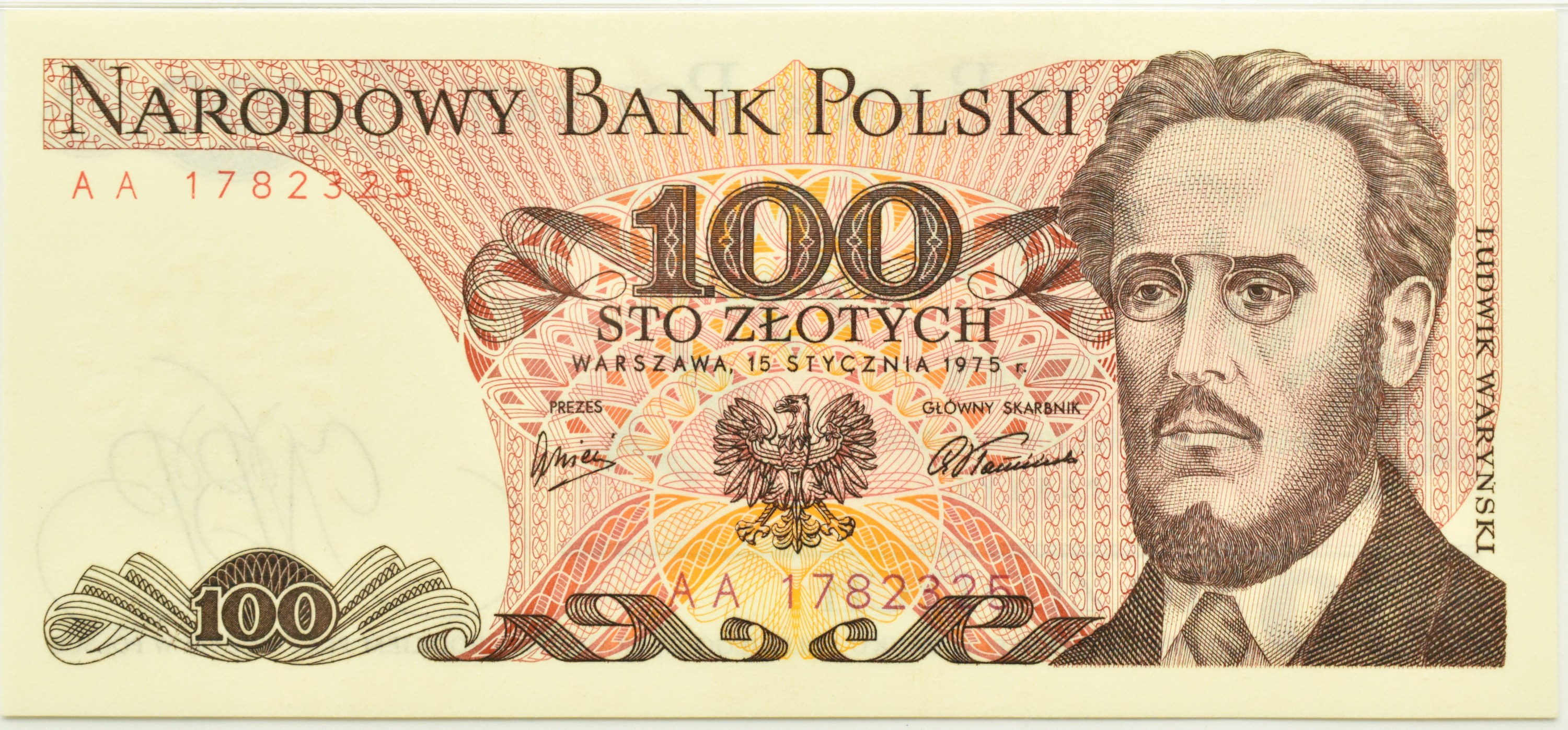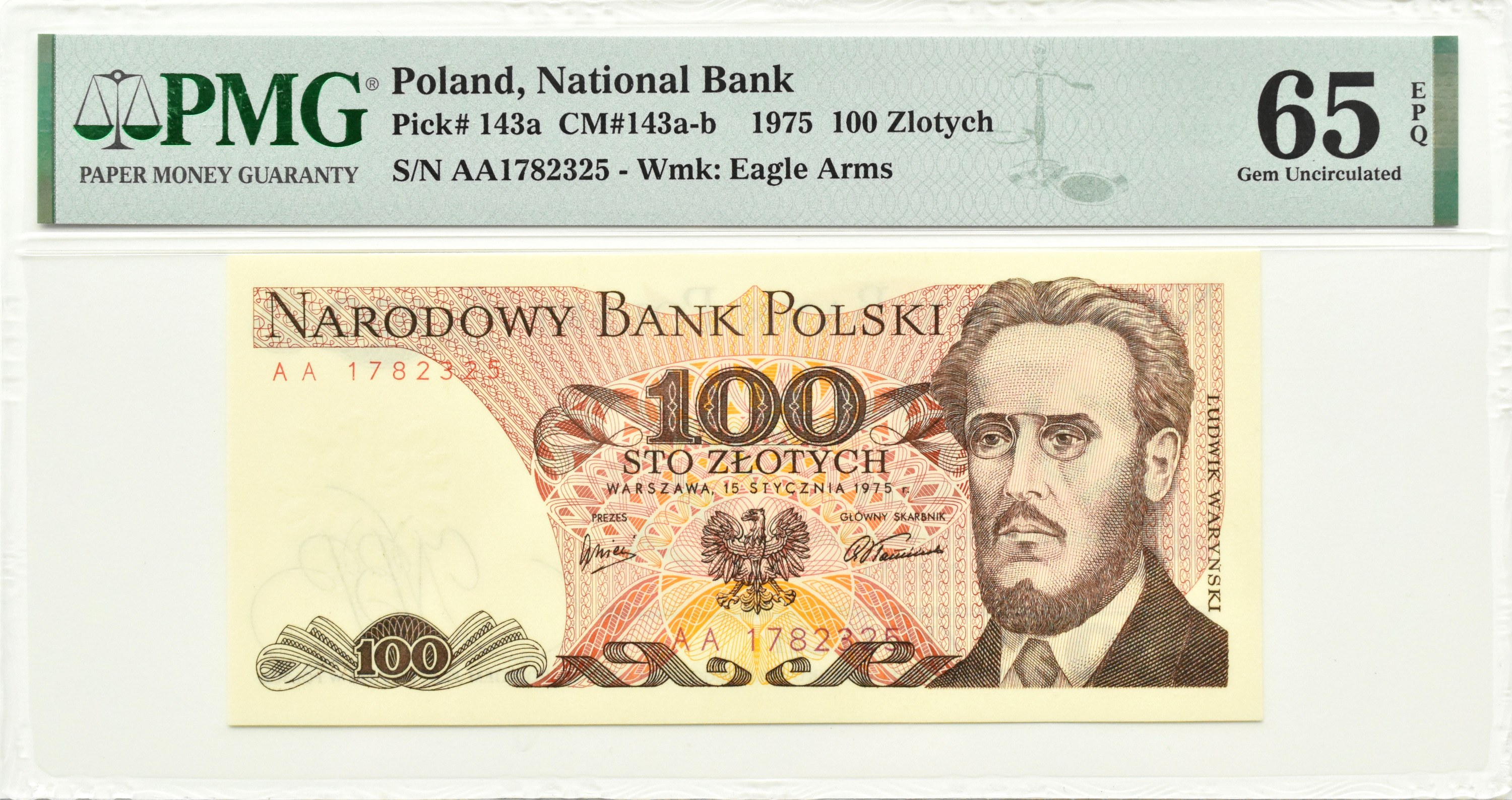 Polska, PRL, Ludwik Waryński, 100 złotych 1975, seria AA, Warszawa, PMG 65 EPQ