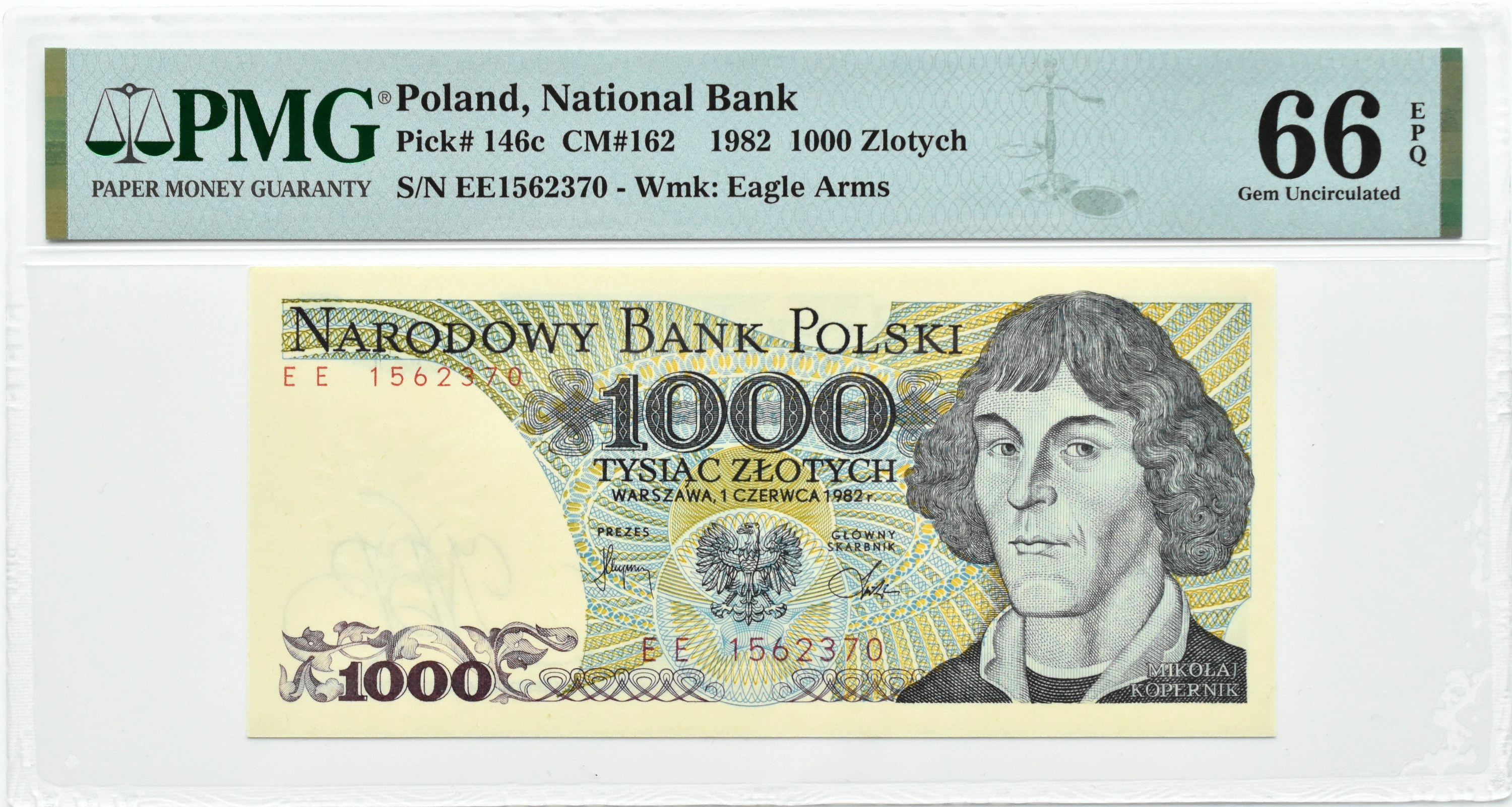 Polska, PRL, Mikołaj Kopernik, 1000 złotych 1982, seria EE, Warszawa, PMG 66 EPQ