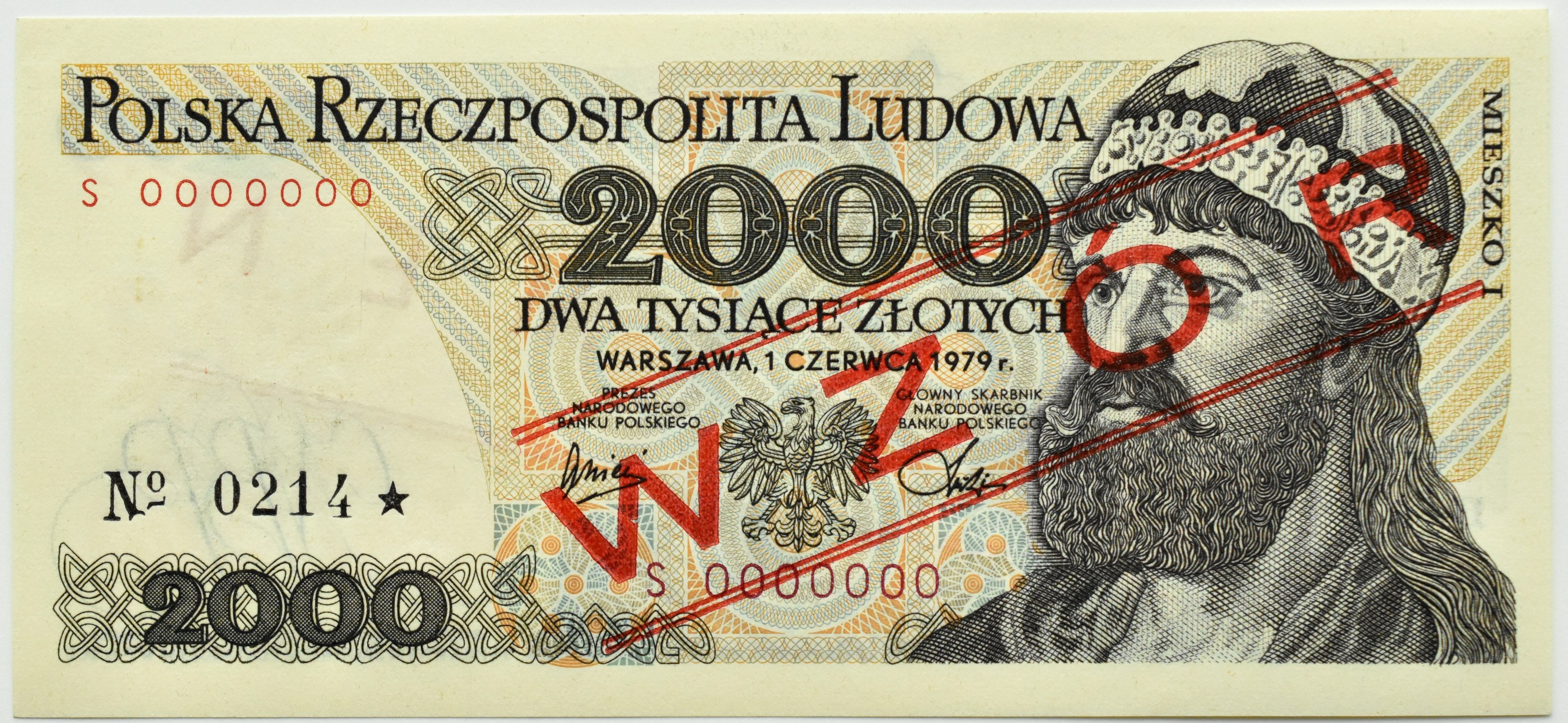 Polska, PRL, Mieszko I, 2000 złotych 1979, seria S - WZÓR No 0214*, Warszawa, UNC