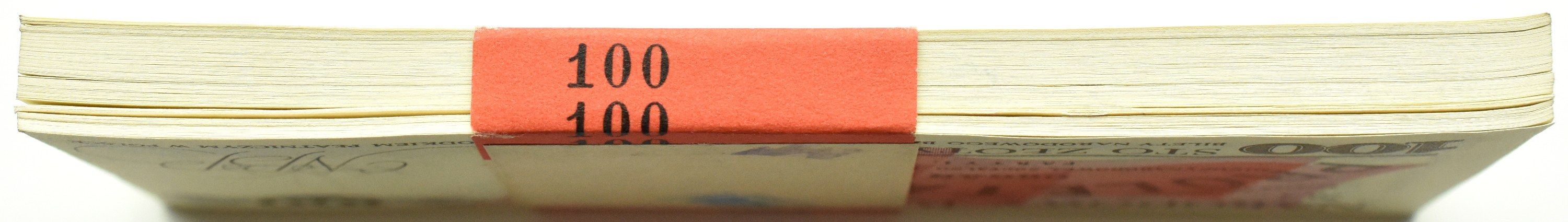 paczka 100 sztuk banknotów, kilka banknotów innych serii: MW (3), RS (2)