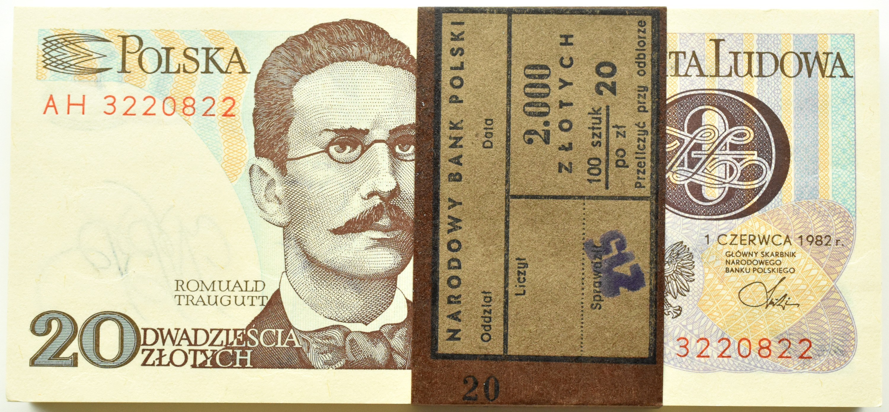 Polska, PRL, Romuald Traugutt, 20 złotych 1982, Warszawa, seria AH, UNC