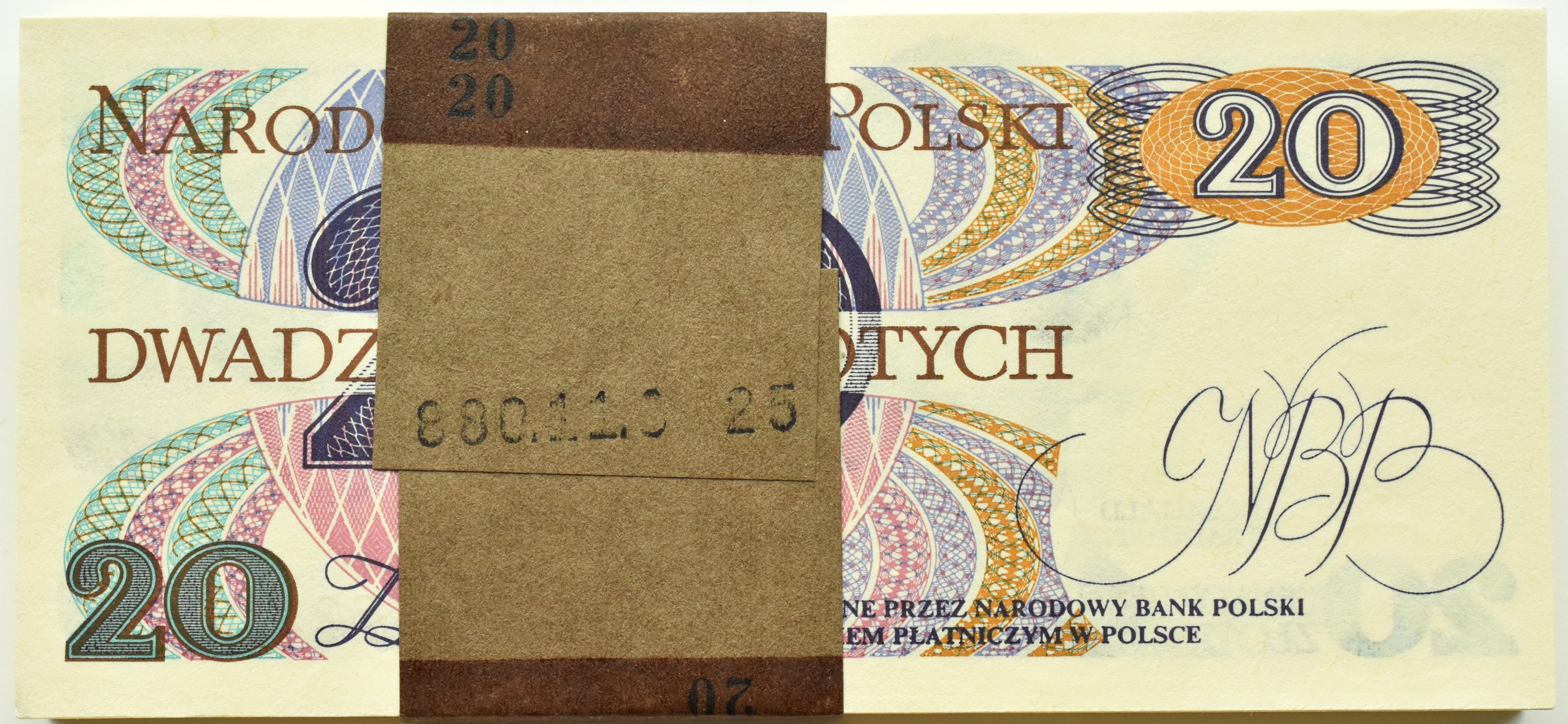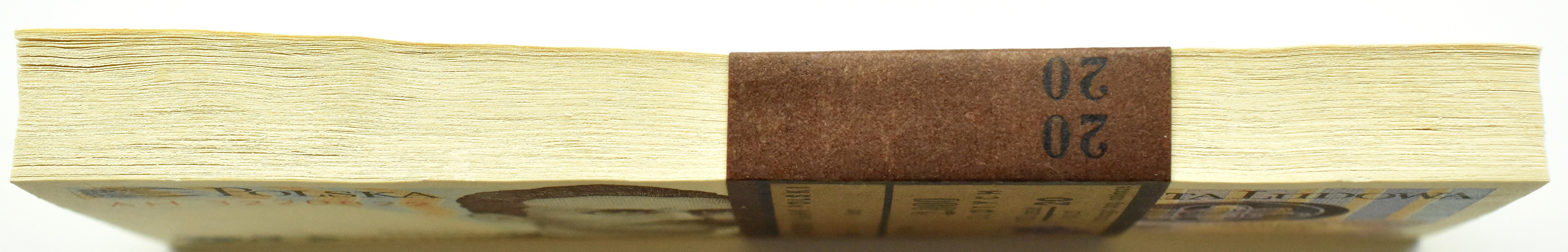 Stan idealny. Kompletna paczka bankowa 100 sztuk banknotów, z oryginalną banderolą zachowaną w stanie nienaruszonym.