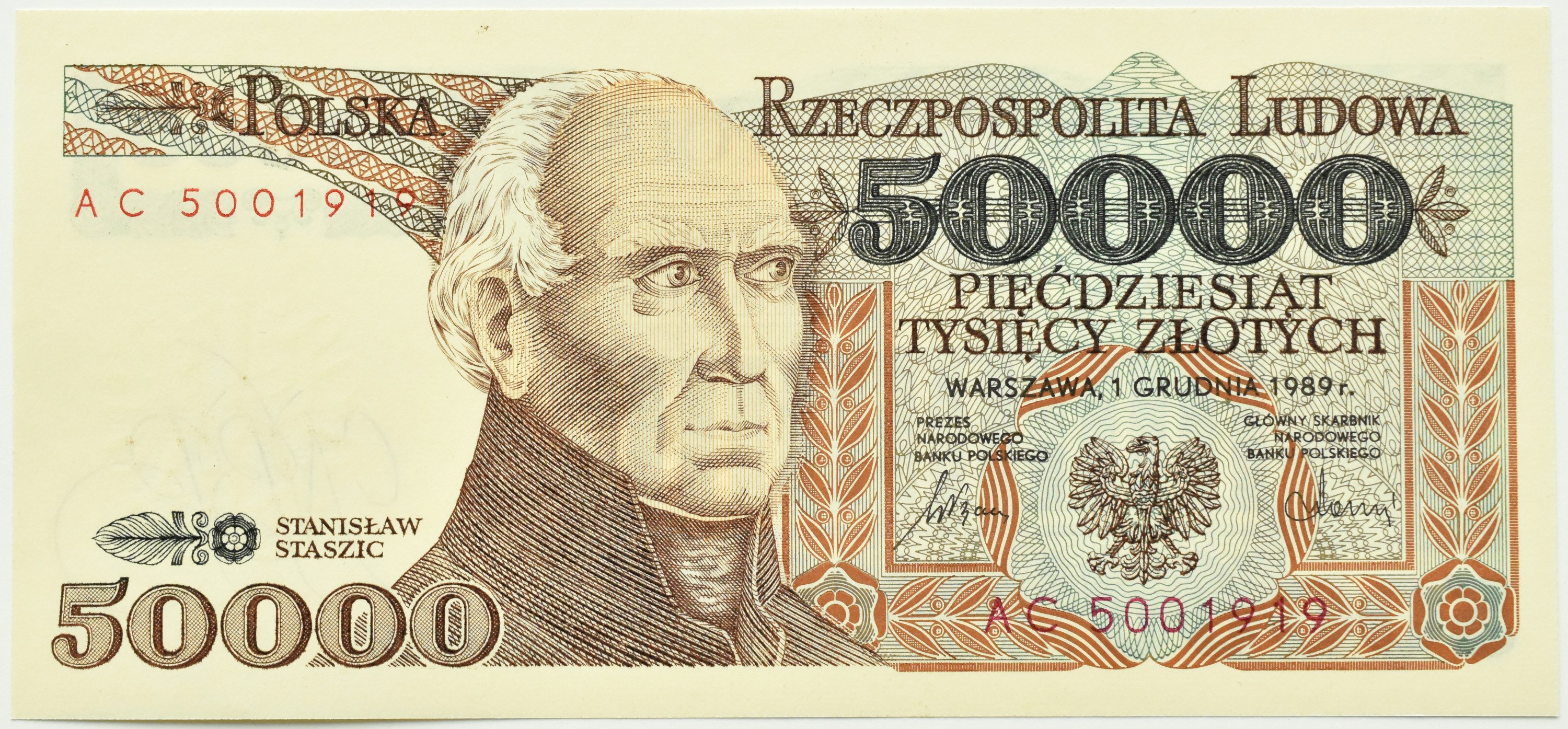 Polska, Stanisław Staszic, 50000 złotych 1989, seria AC, Warszawa, UNC