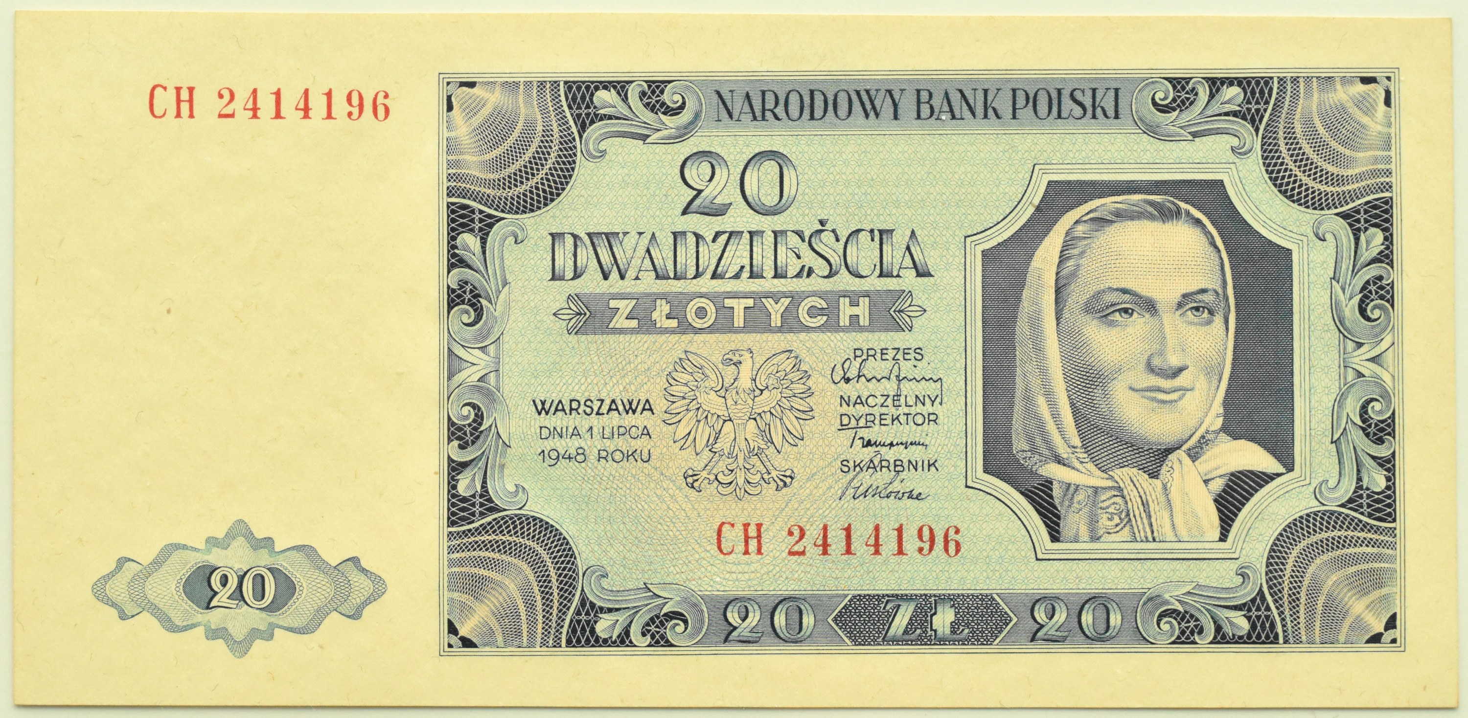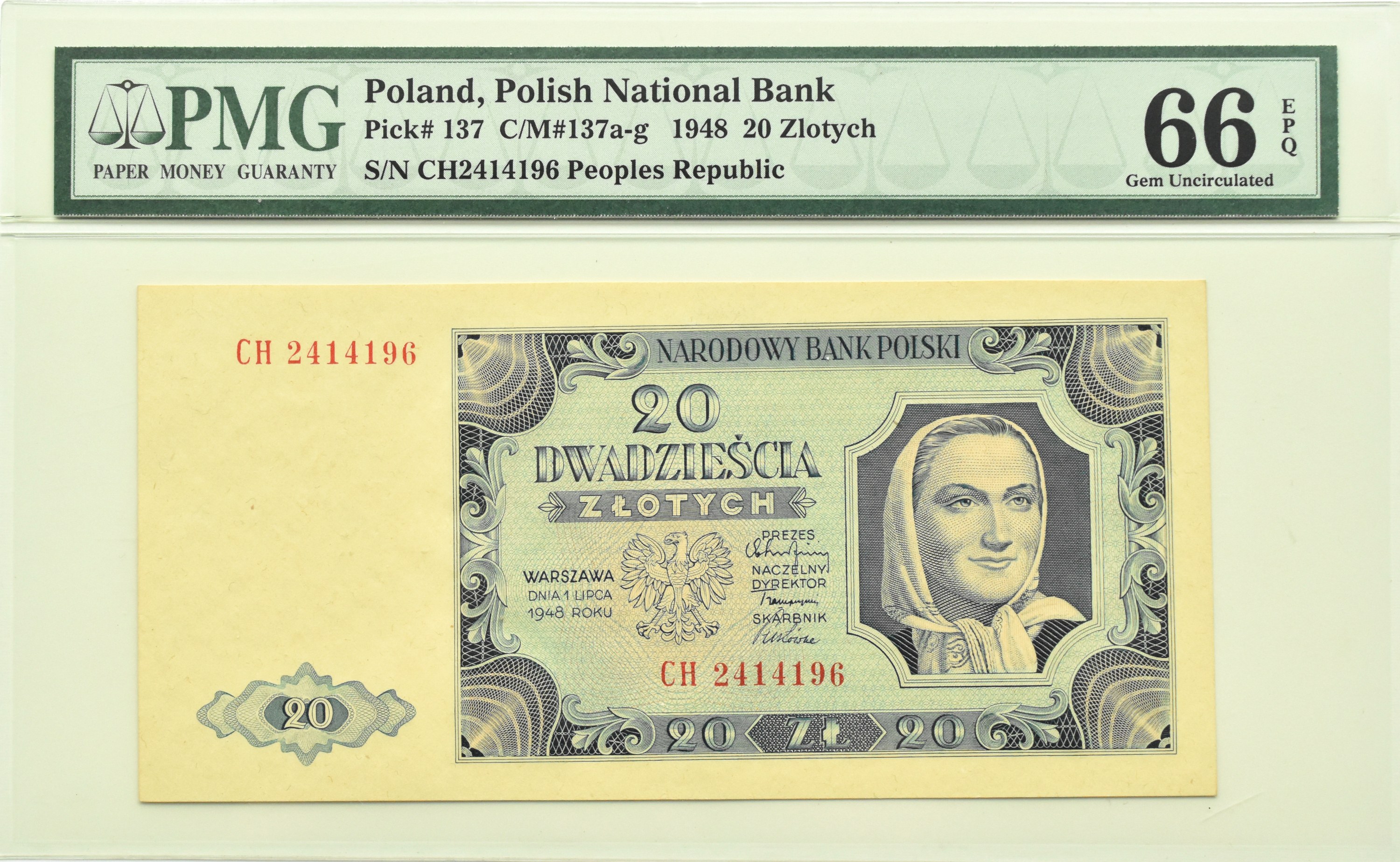 Polska, RP, 20 złotych 1948, seria CH, Warszawa, PMG 66 EPQ